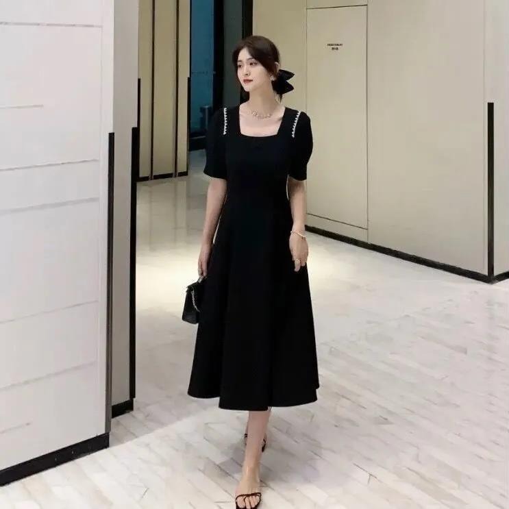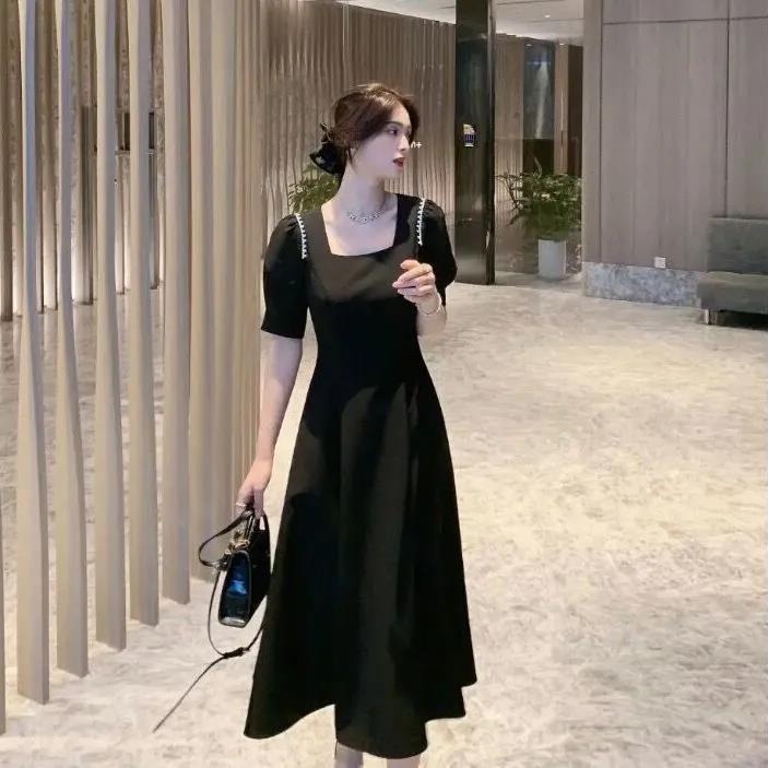 Черное платье женское лето 2025 новый модный тонкий тонкий живот