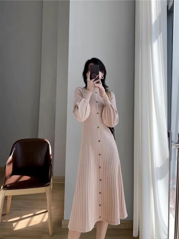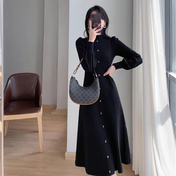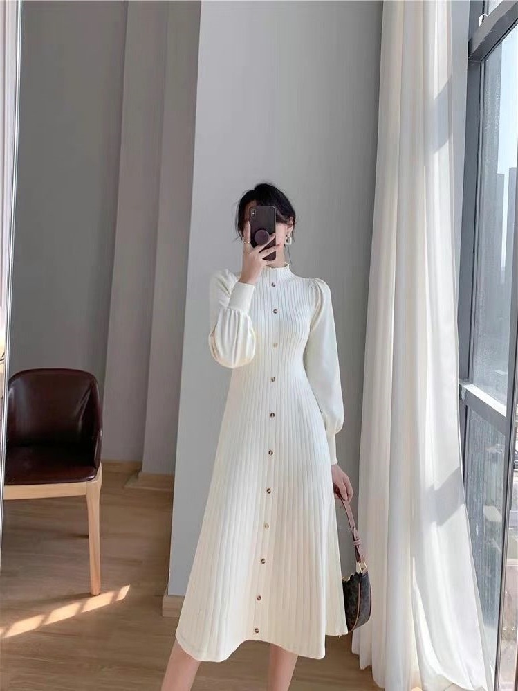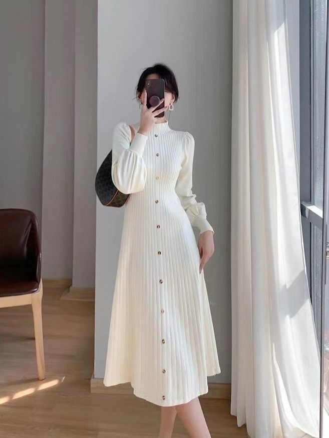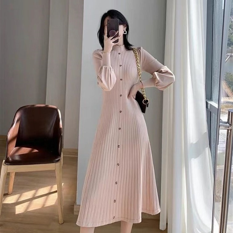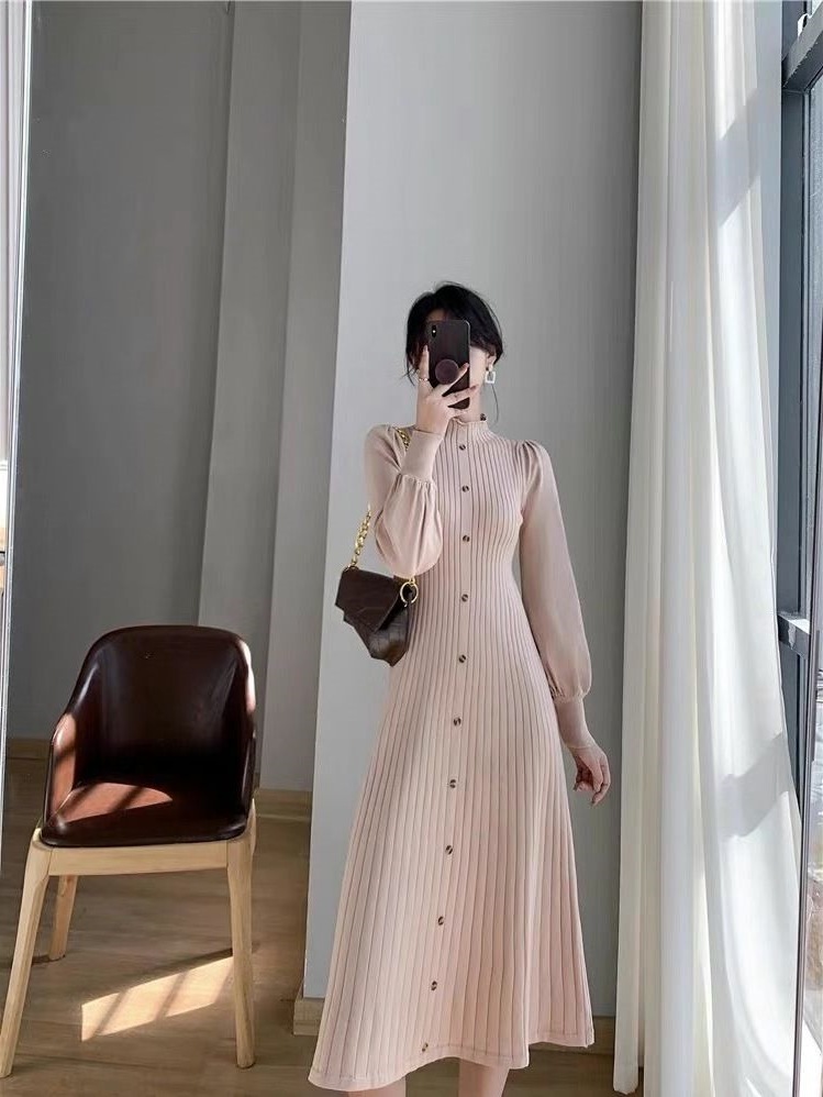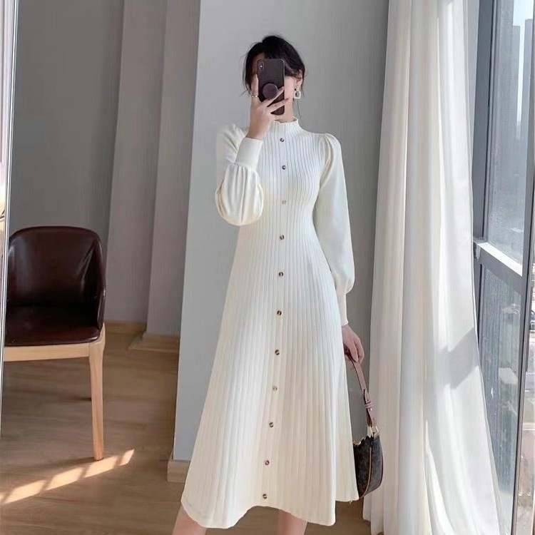 Главная страница > 2024 новое осенне-зимнее платье-свитер в корейском стиле с полугольфом, средней длины, вязаное с длинным рукавом для женщин