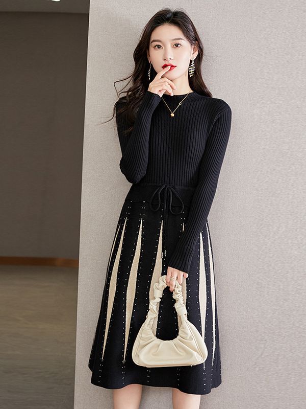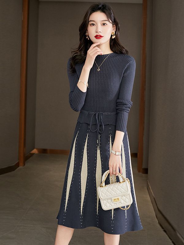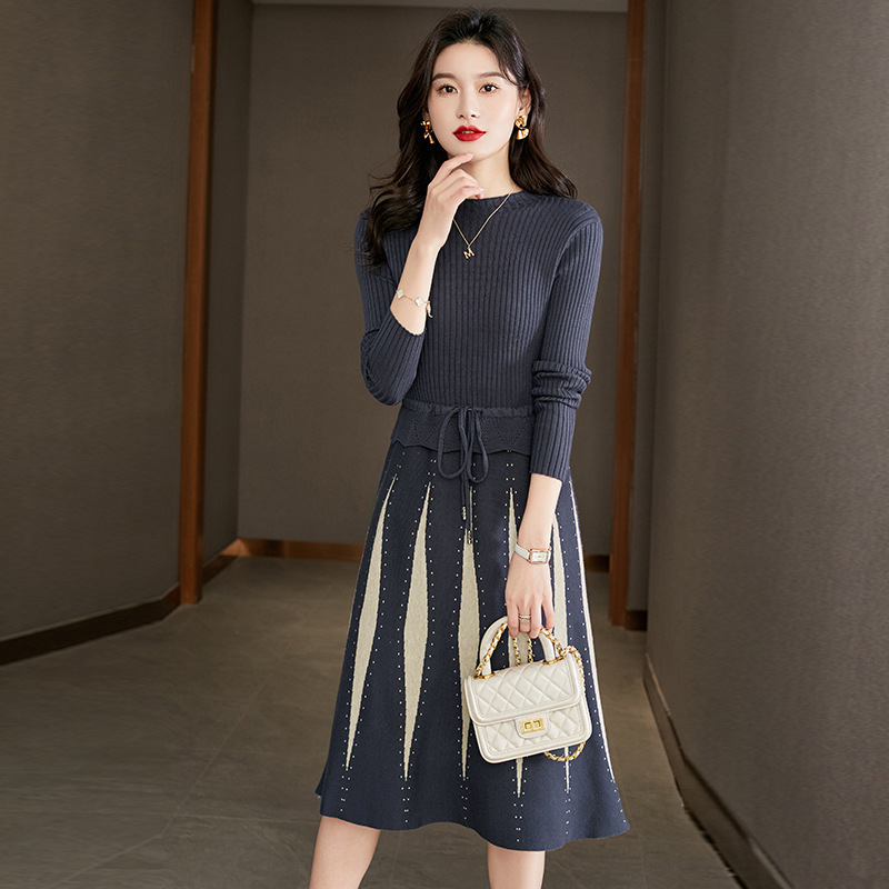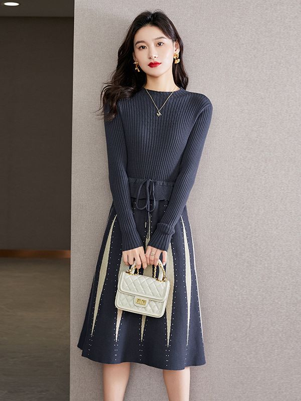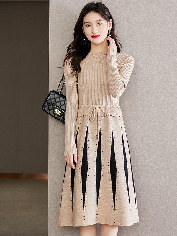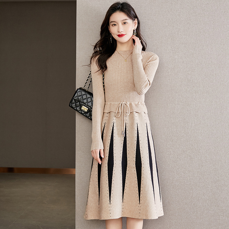 Главная страница > Вязаное Платье женское 2023, осенне-зимнее пальто средней длины выше колена, темпераментное приталенное пальто с внутренней талией, платье-свитер
