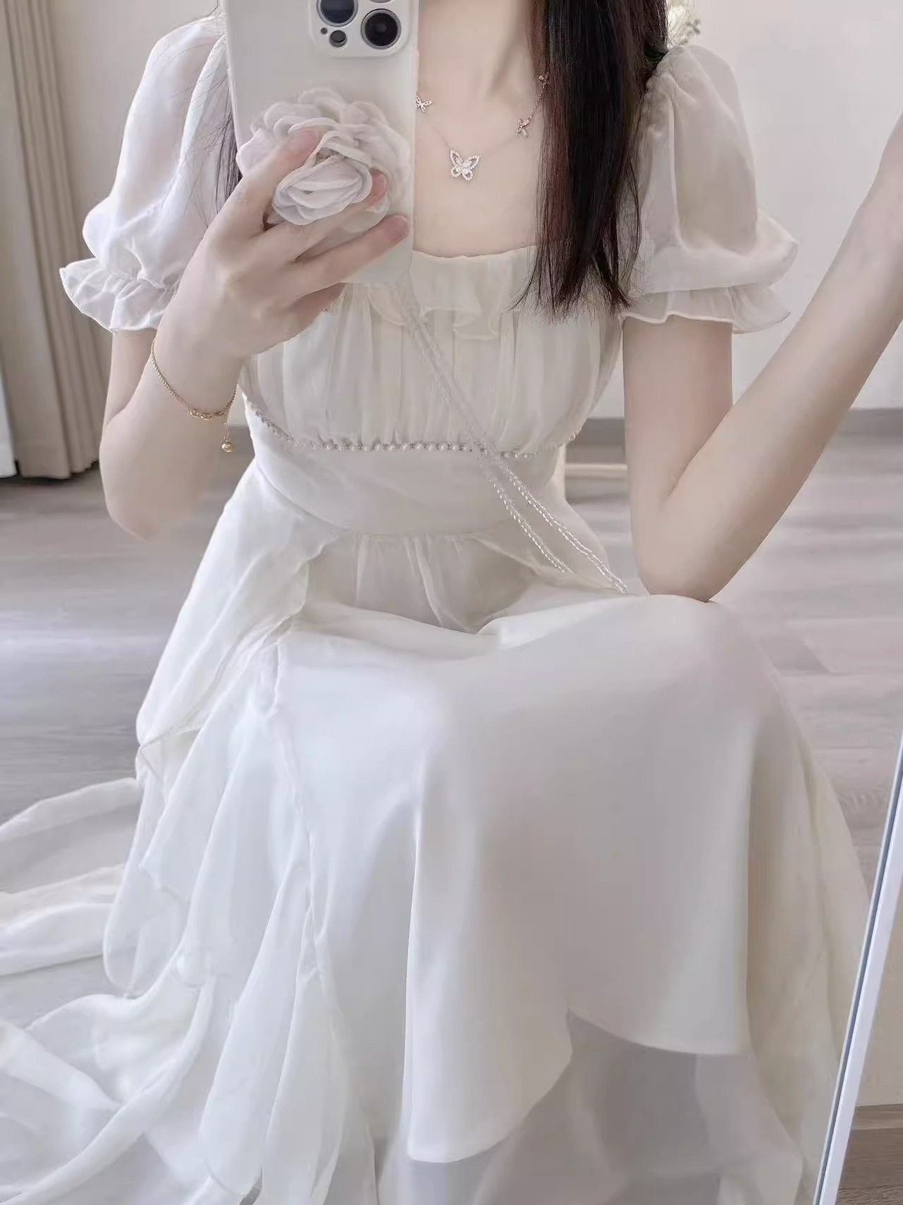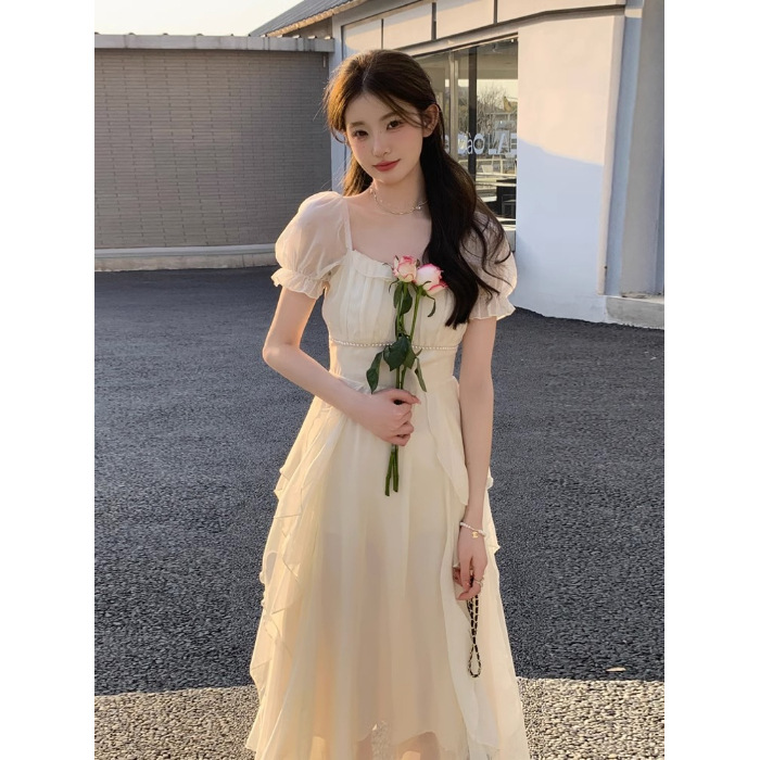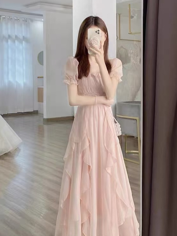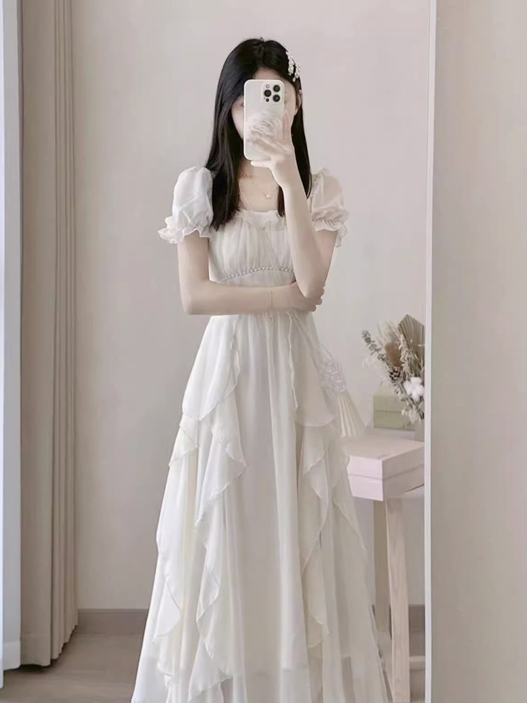 Французское белое фея платье высокого уровня женское лето 2025 новый супер сказочное платье принцессы нежное длинное платье