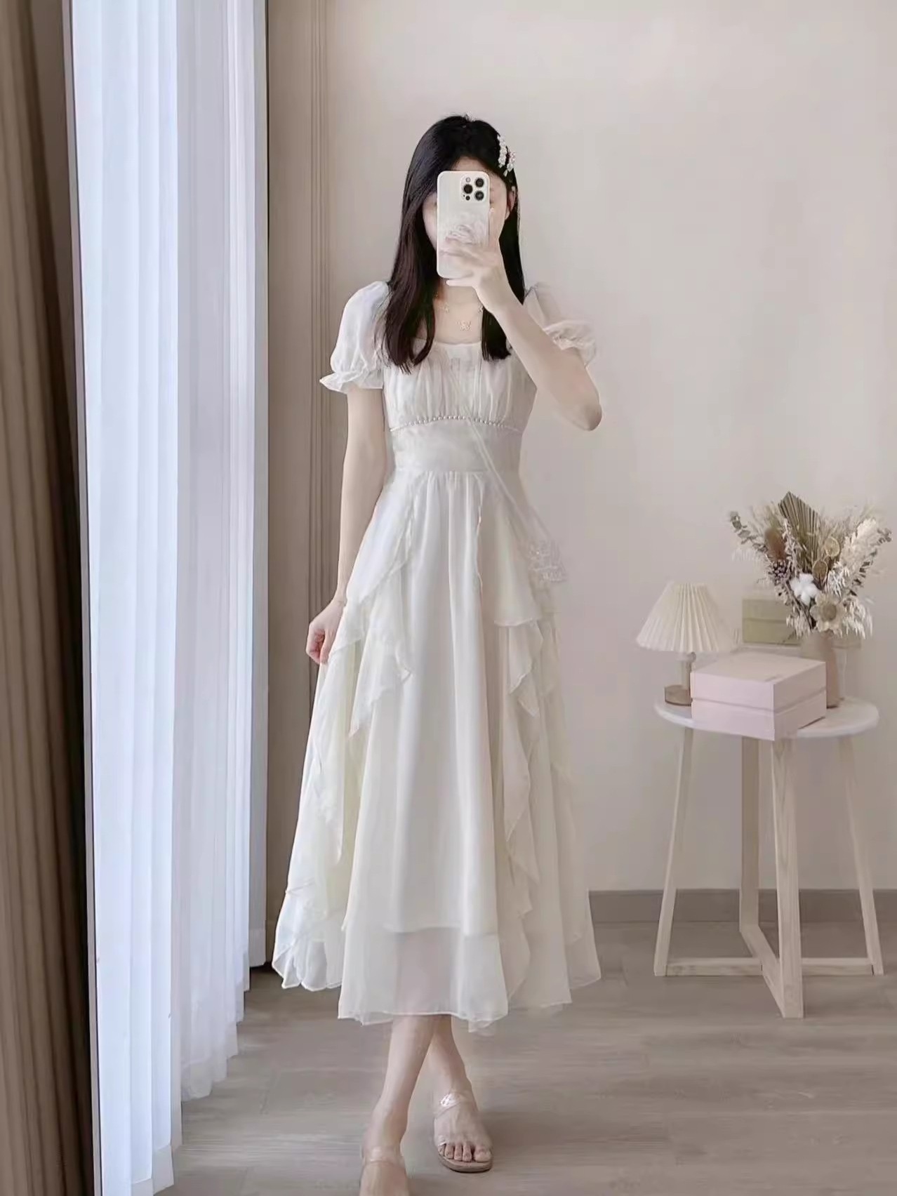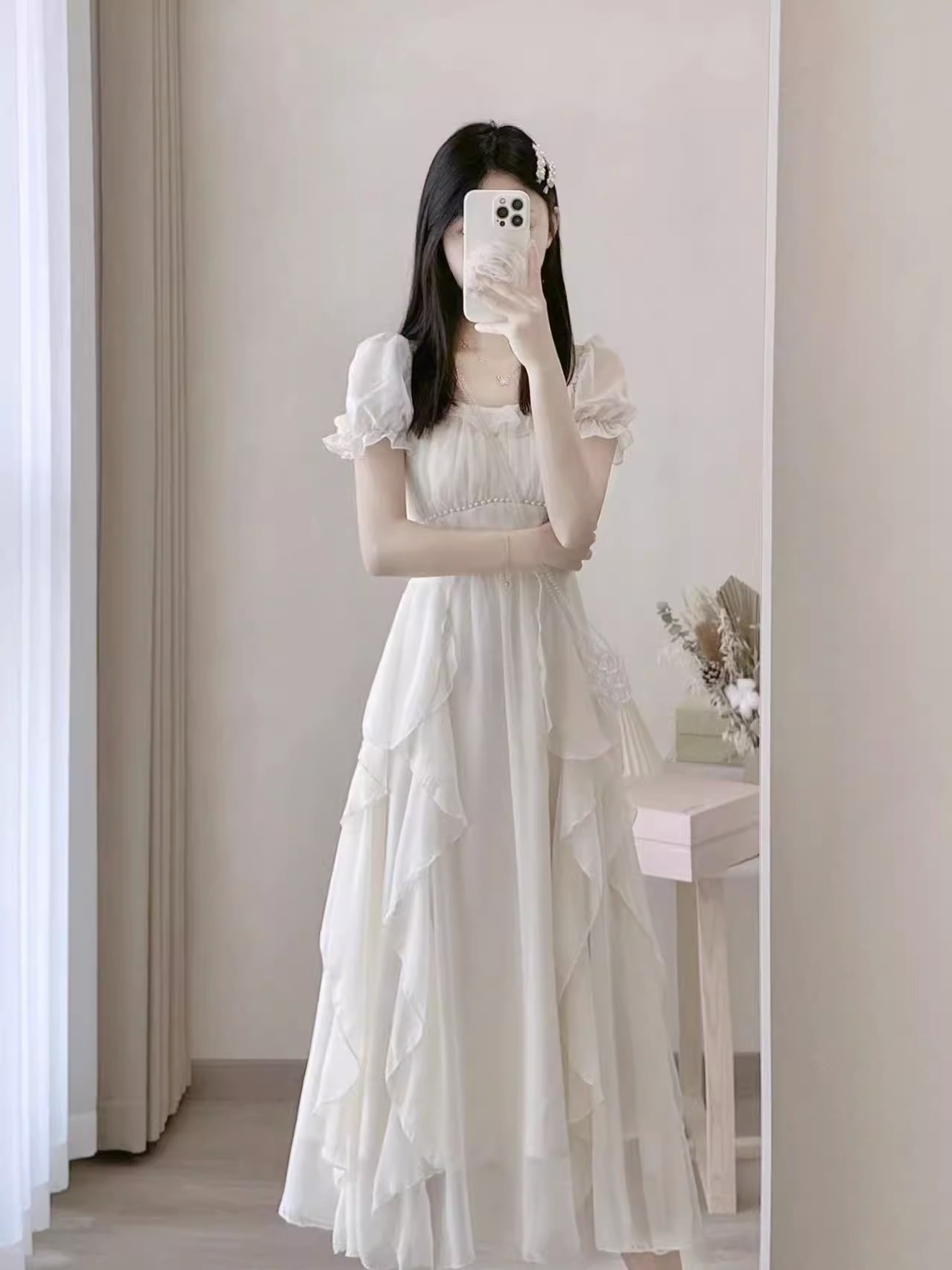 Главная страница > Французское белое фея платье высокого уровня женское лето 2025 новый супер сказочное платье принцессы нежное длинное платье
