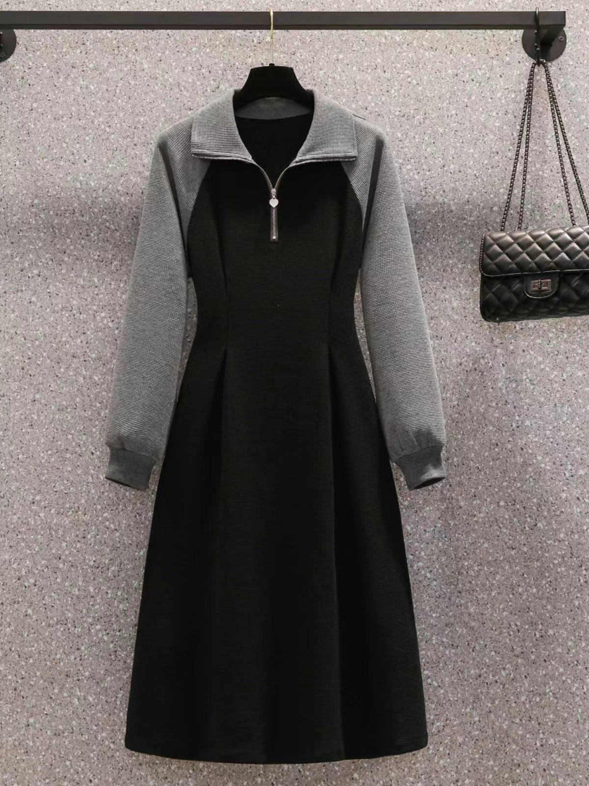 Главная страница > Ранняя осень женская одежда больших размеров 2023 Новое подходящее по цвету воротник поло Толстая сестра чувство дизайна маленькое длинное короткое платье