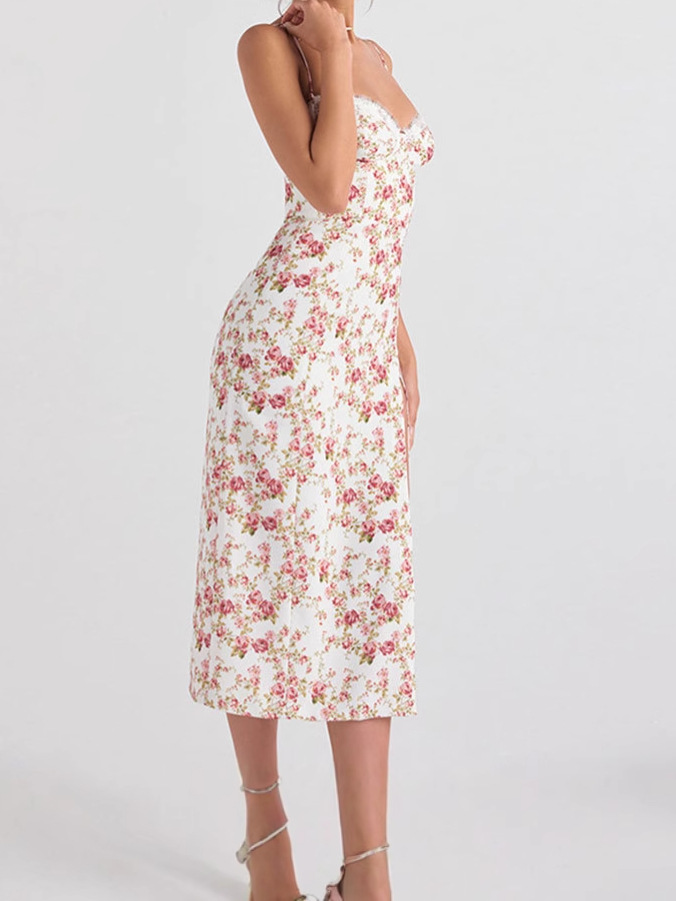 Европейское и американское трансграничное весеннее женское новое модное платье Amazon с небольшим цветочным принтом и разрезом на подтяжках для женщин
