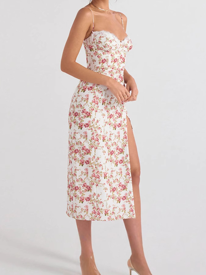 Главная страница > Европейское и американское трансграничное весеннее женское новое модное платье Amazon с небольшим цветочным принтом и разрезом на подтяжках для женщин