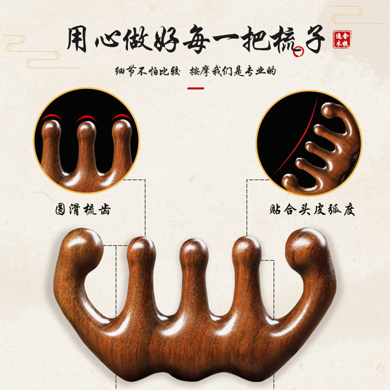 [Задняя часть головы] Массажная расческа по меридианам из золотого сандалового дерева (на 2 см толще)