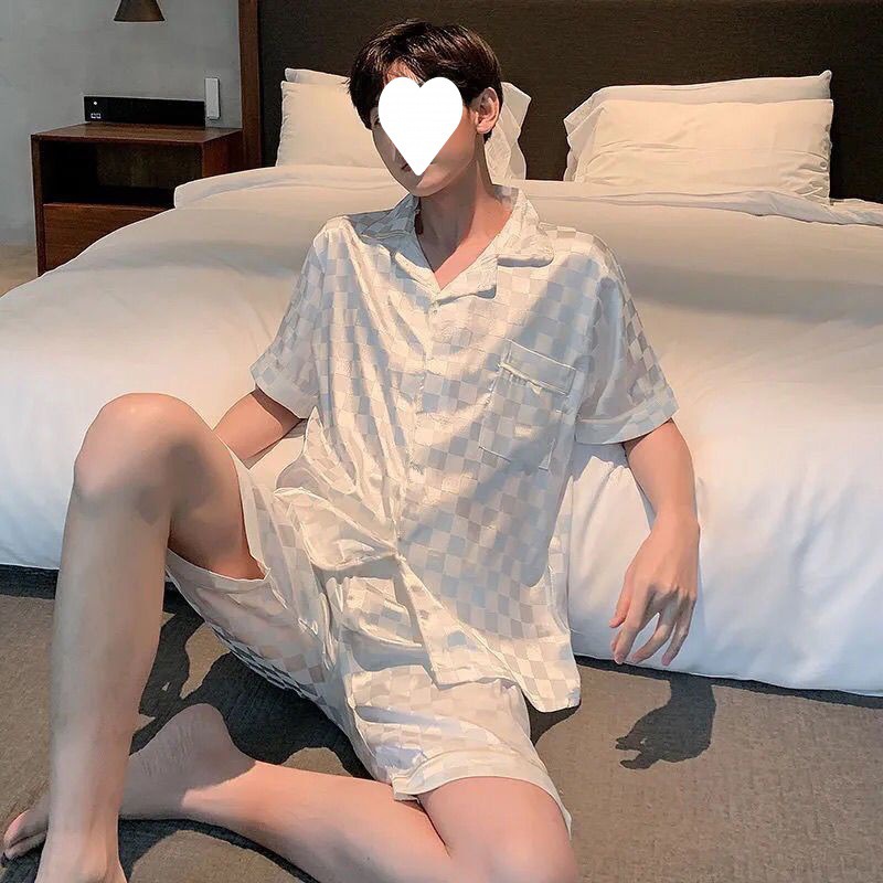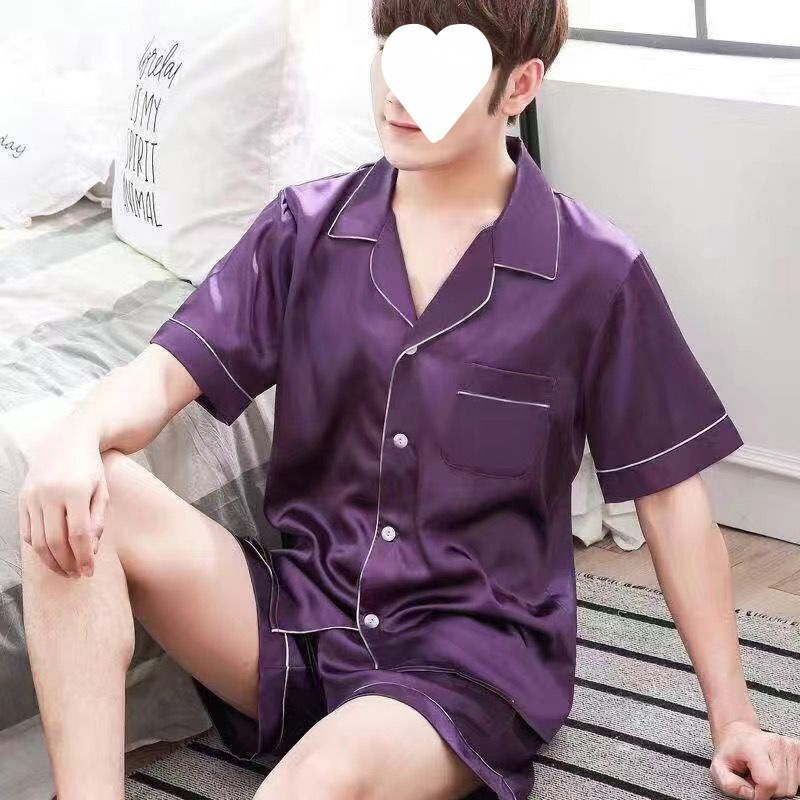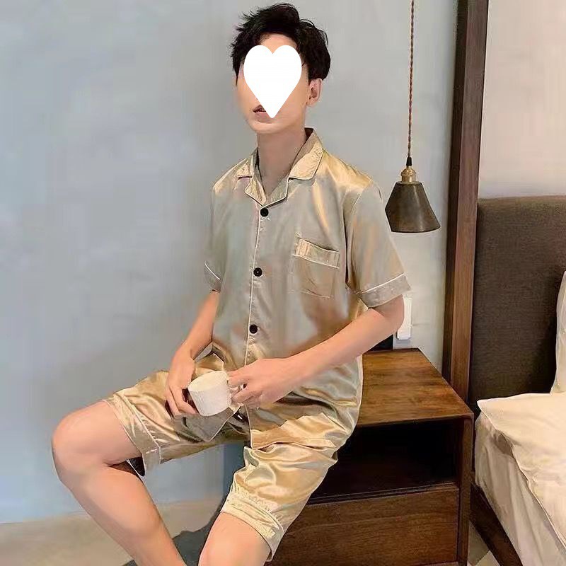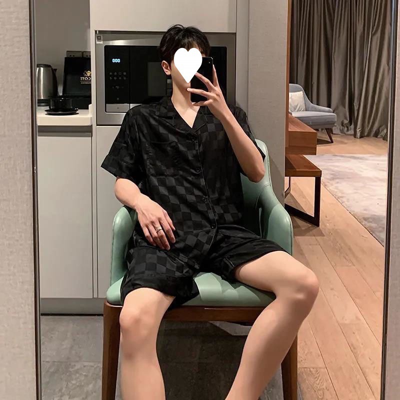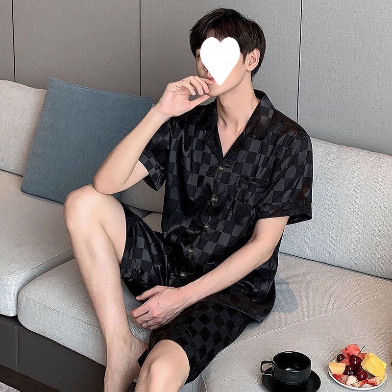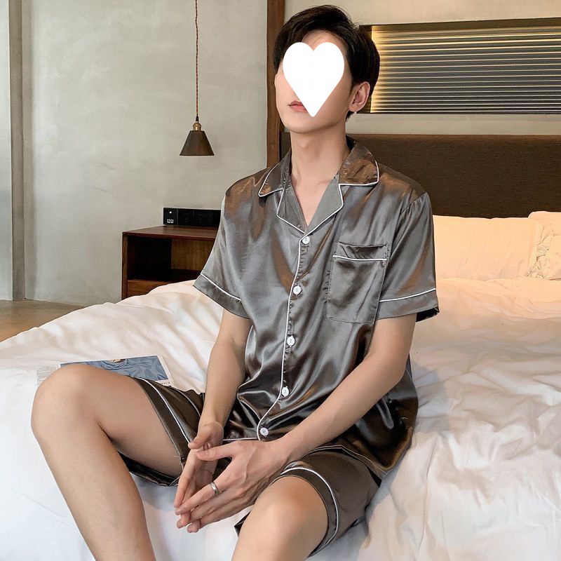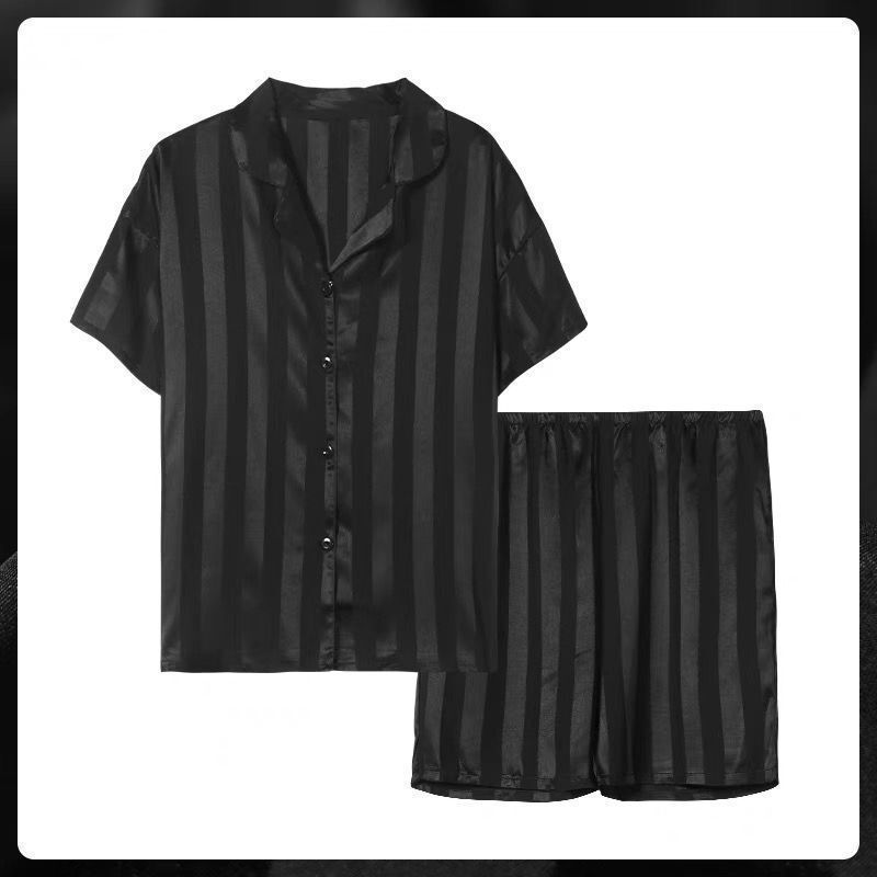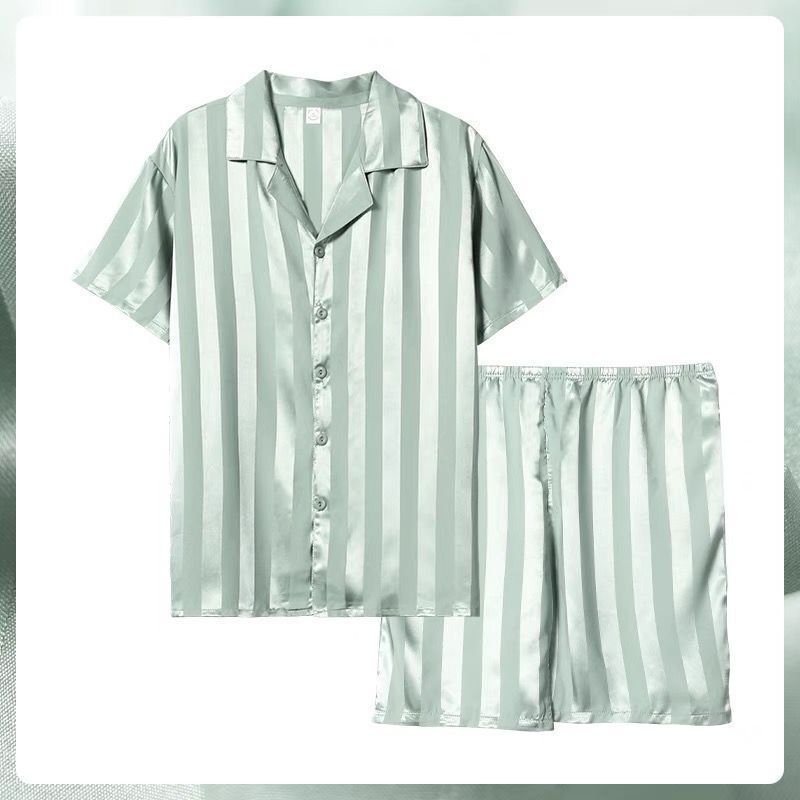 Главная страница > Короткие пижамы 2024, новинка, мужские летние тонкие рукава из ледяного шелка, простой полосатый комплект для отдыха, независимый магазин