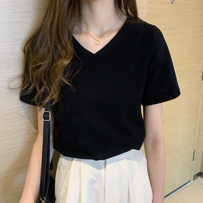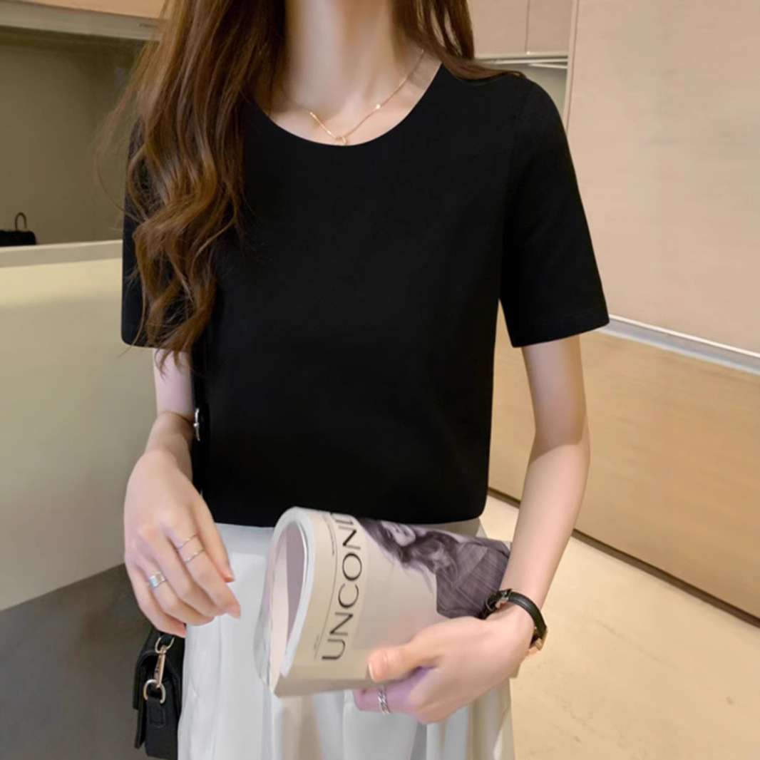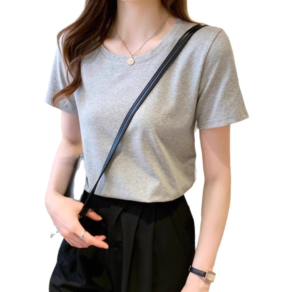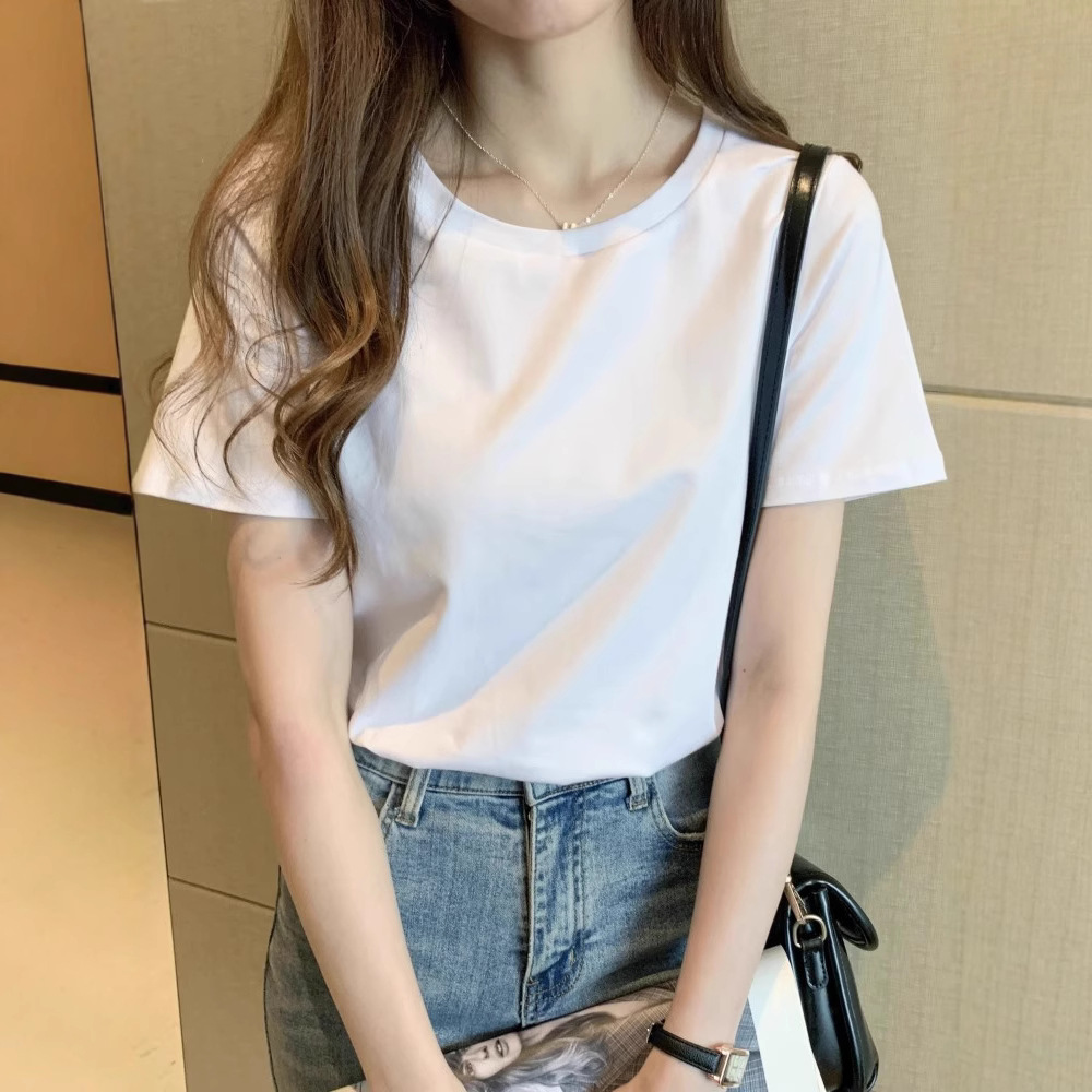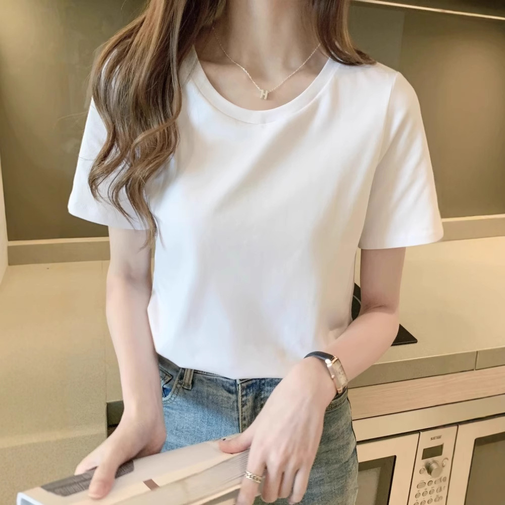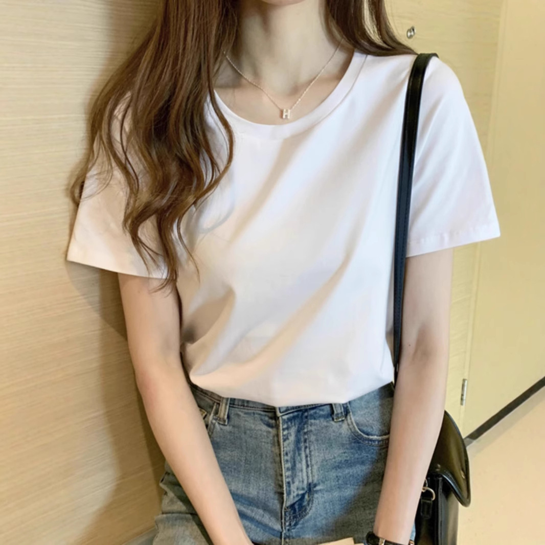 Главная страница > Женская хлопковая белая футболка с короткими рукавами, новая летняя свободная рубашка с тонким низом, однотонный топ для похудения, предварительная продажа