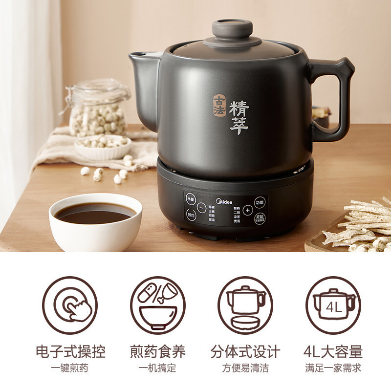 Главная страница > Электрический отварной горшок Midea для китайской медицины, полностью автоматический отварной горшок, бытовой многофункциональный керамический JYC4002