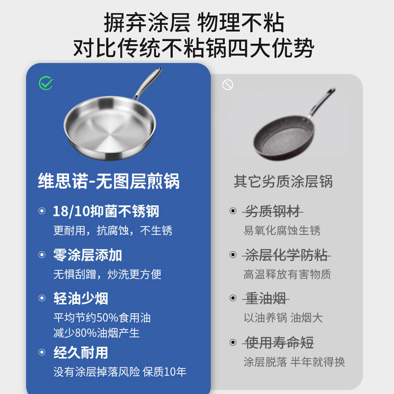 Главная страница > Трехслойная сковорода из нержавеющей стали 316 без покрытия для домашнего использования, антипригарная сковорода для блинов, сковорода для жарки, для стейков, для жареных яиц, утолщенная 2.0