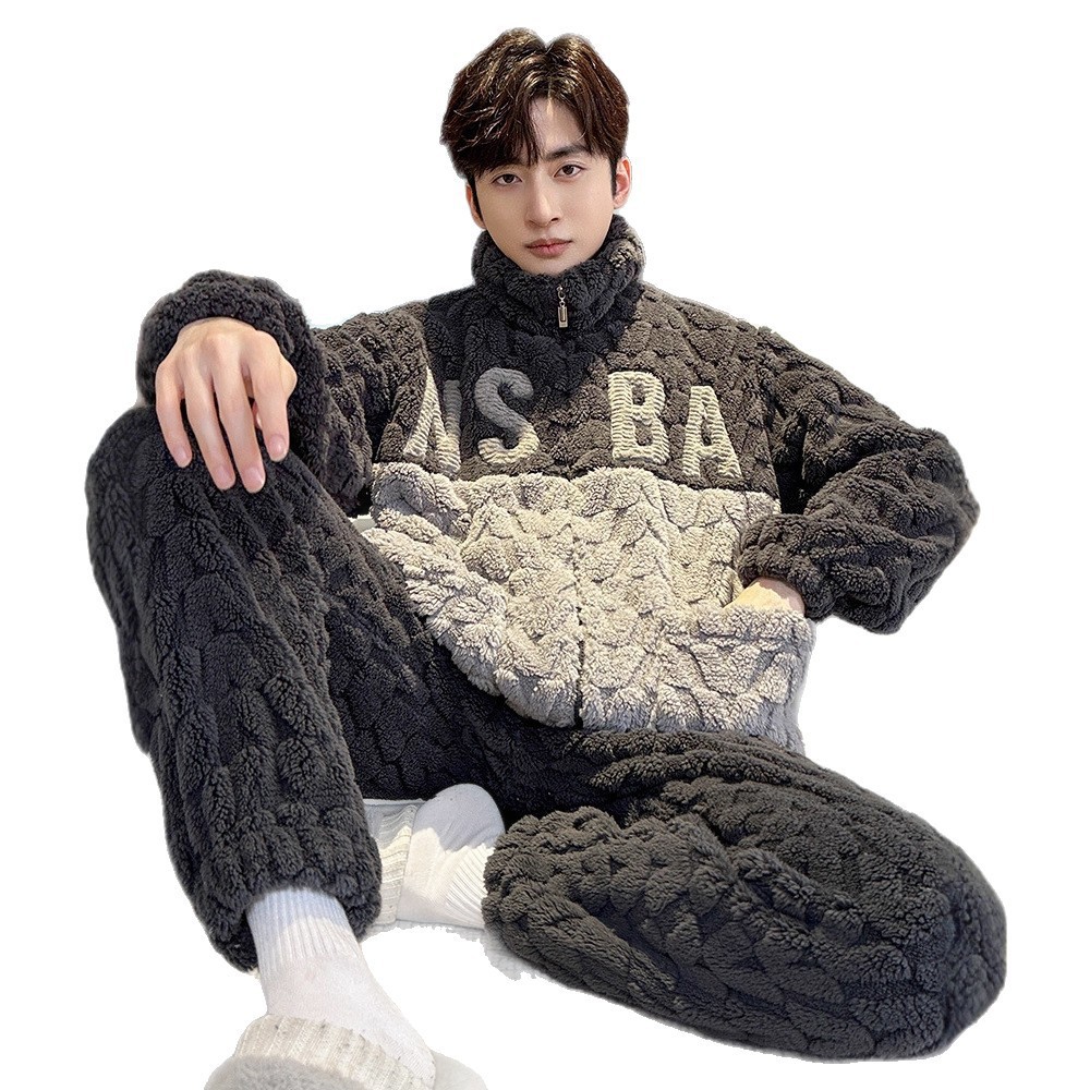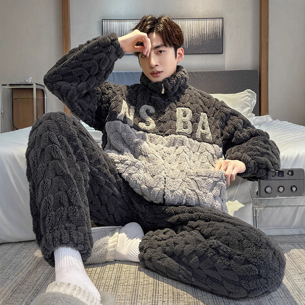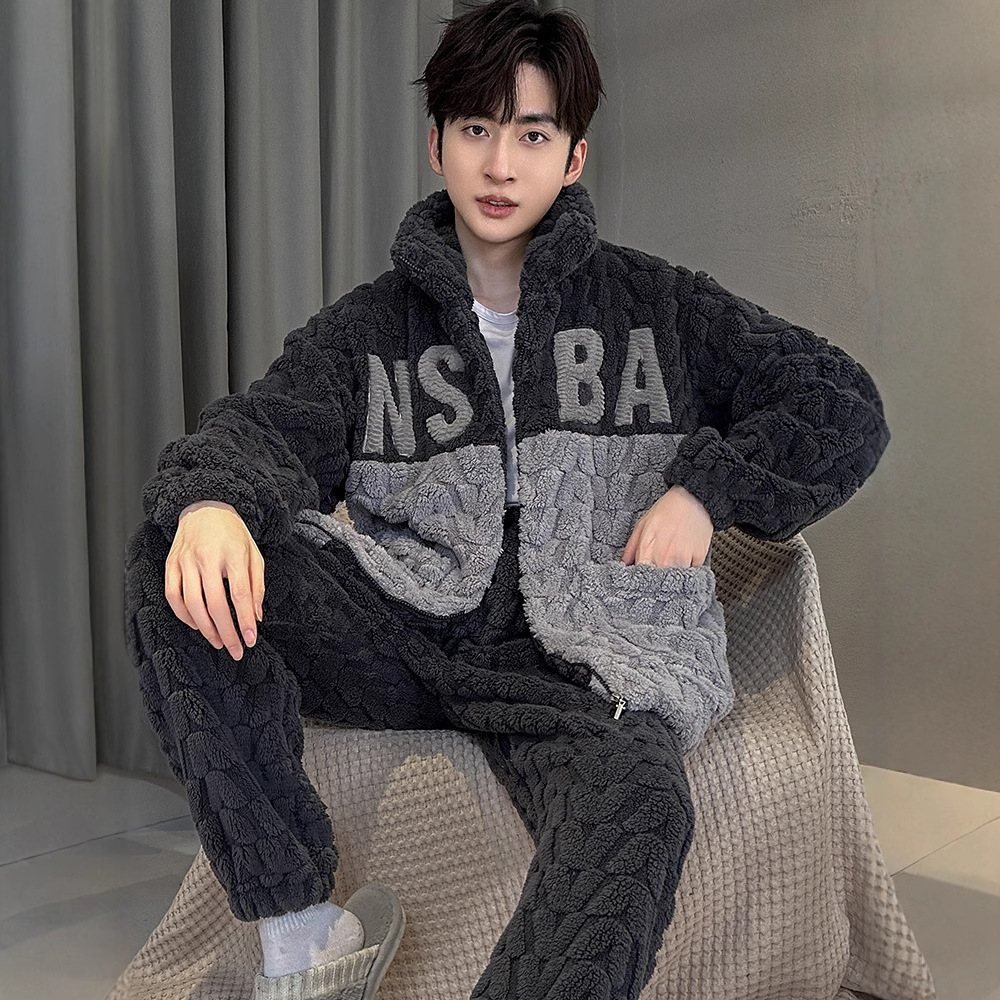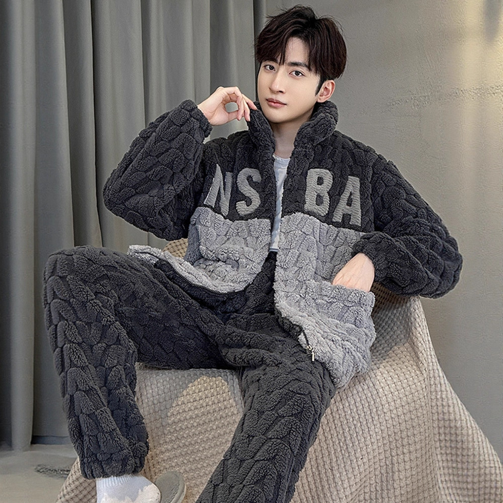 Главная страница > Коралловые бархатные пижамы мужские осенне-зимние на флисовой подкладке утепленные зимние двухсоставные костюмы мужские на молнии фланелевая домашняя одежда