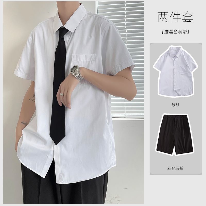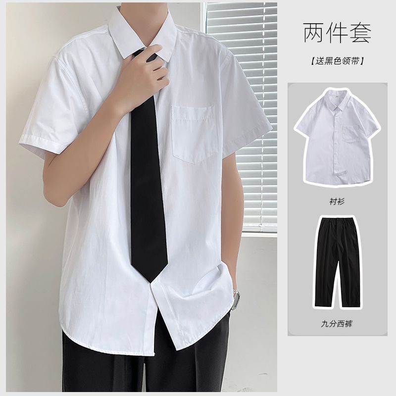 Главная страница > Белая рубашка Молодежная рубашка Летняя тонкая мужская униформа в студенческом стиле DK с короткими рукавами костюм японская классная одежда Свободная рубашка