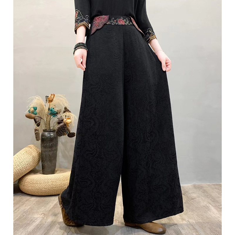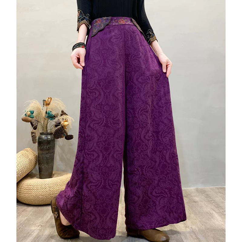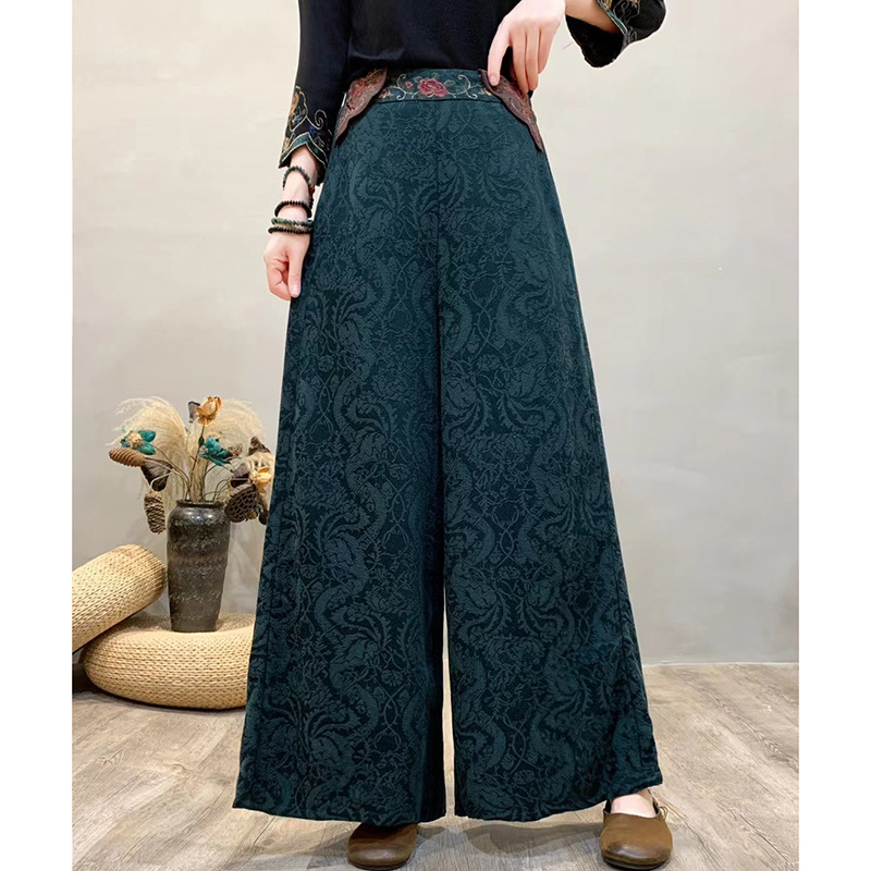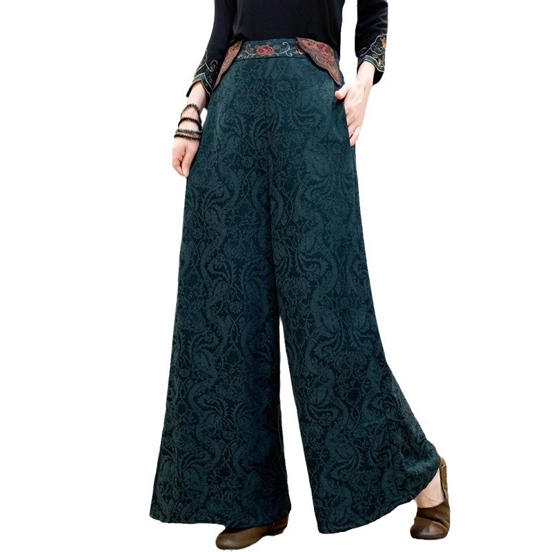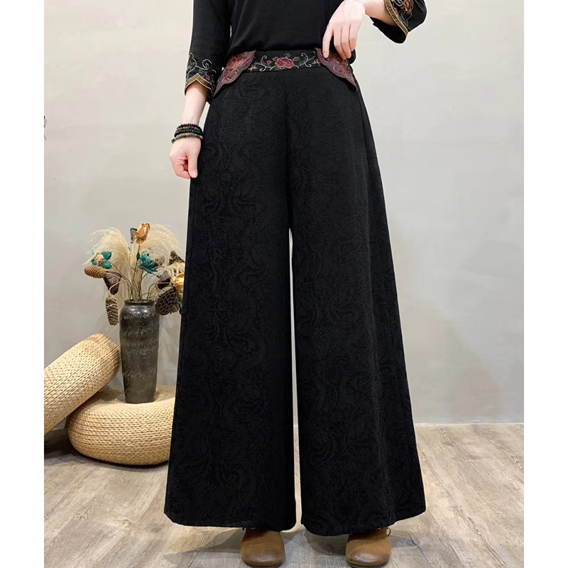 Главная страница > Новые осенние брюки 2025 года: эластичные, больших размеров, прямые, стройнящие, из хлопка и льна, с жаккардовой вышивкой в этническом стиле, широкие штанины, для женщин.