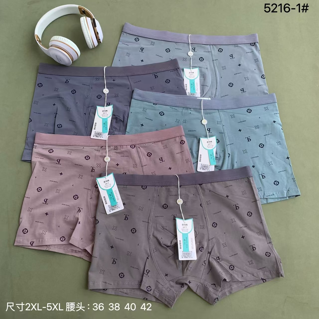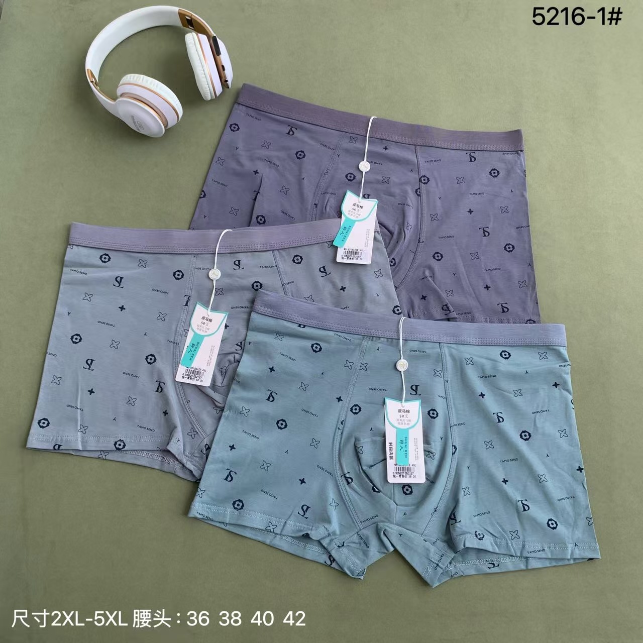 5216-1 Новые мужские трусы-боксеры из 50 хлопковых хлопковых трусов Pima, 3D-версия, удобное антибактериальное дышащее нижнее белье с большим бедром и средней талией