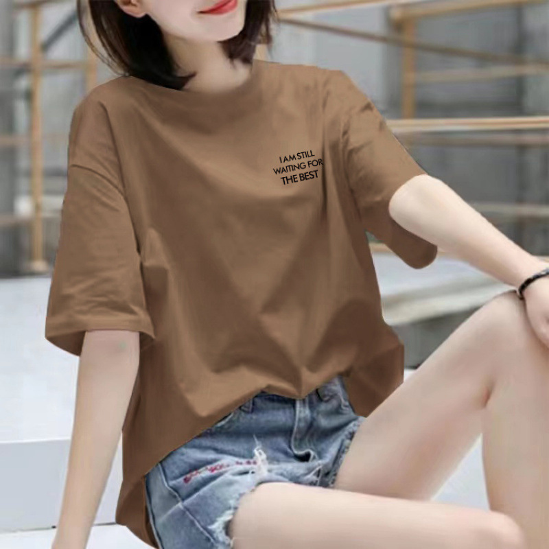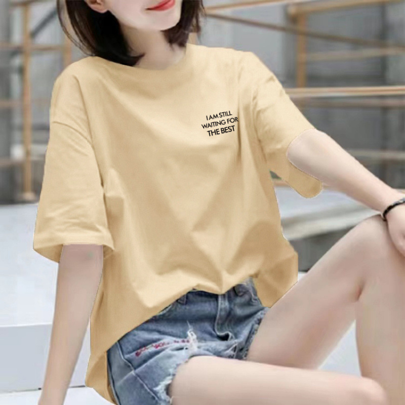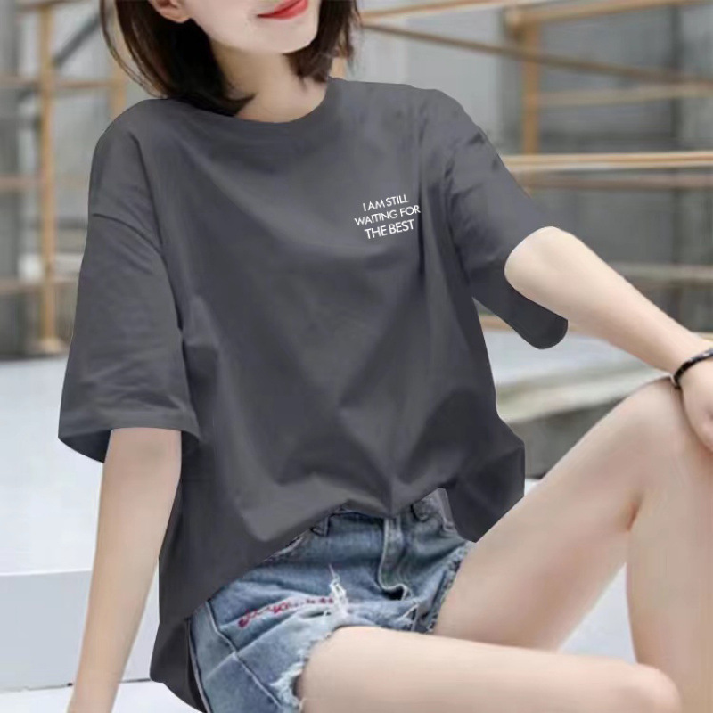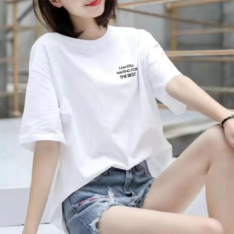 Главная страница > Новый стиль, женская летняя свободная корейская версия с короткими рукавами, простая универсальная футболка с принтом, трендовая футболка