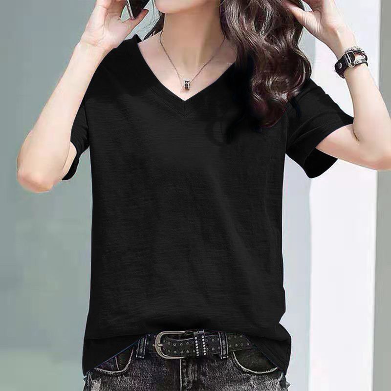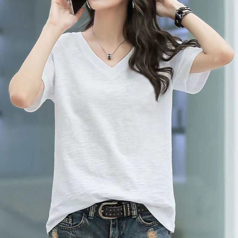 Главная страница > Трансграничное Юго-Восточная Азия # Полиэстер, имитация бамбукового хлопка # Универсальная свободная женская футболка с короткими рукавами, новый корейский стиль, свободная с половиной рукавом