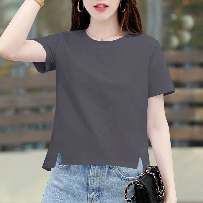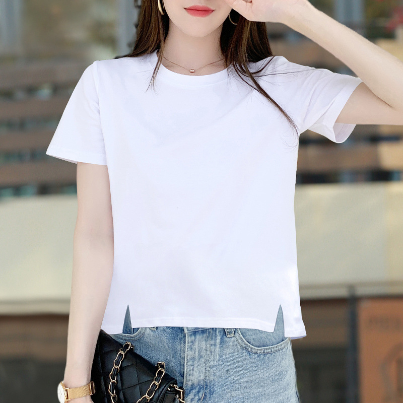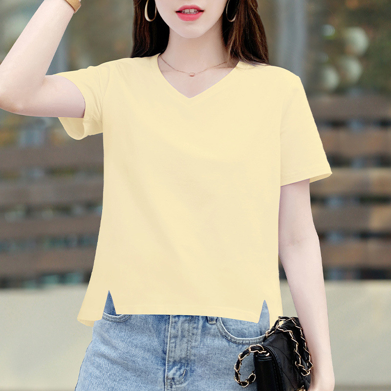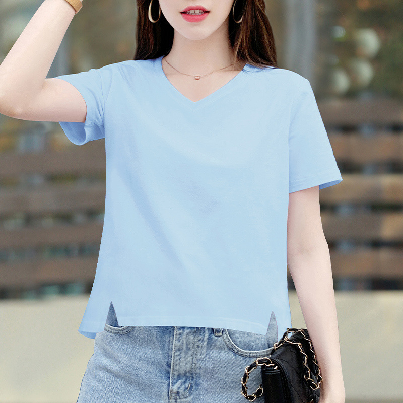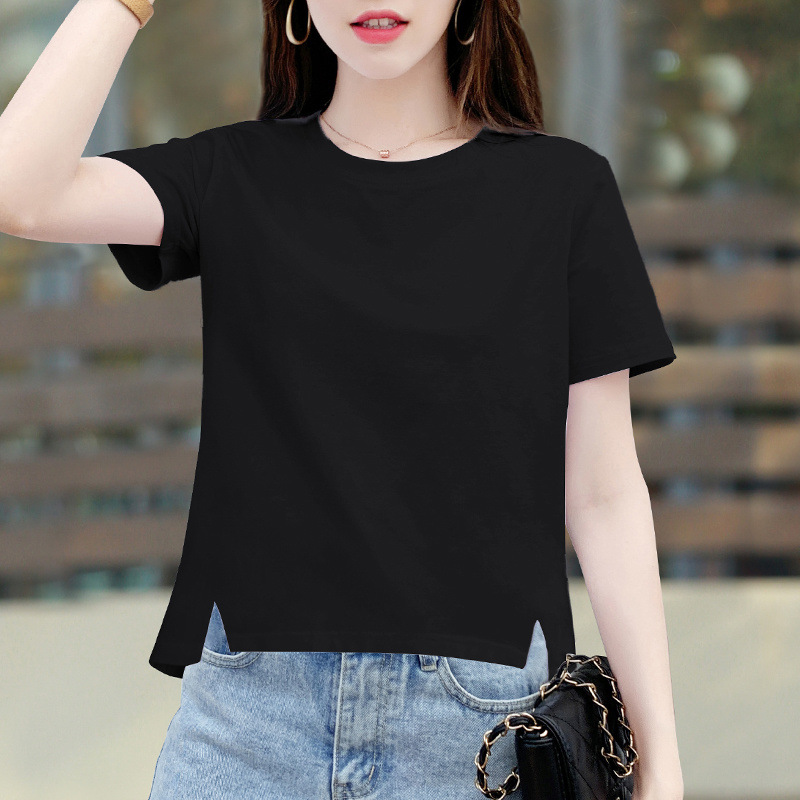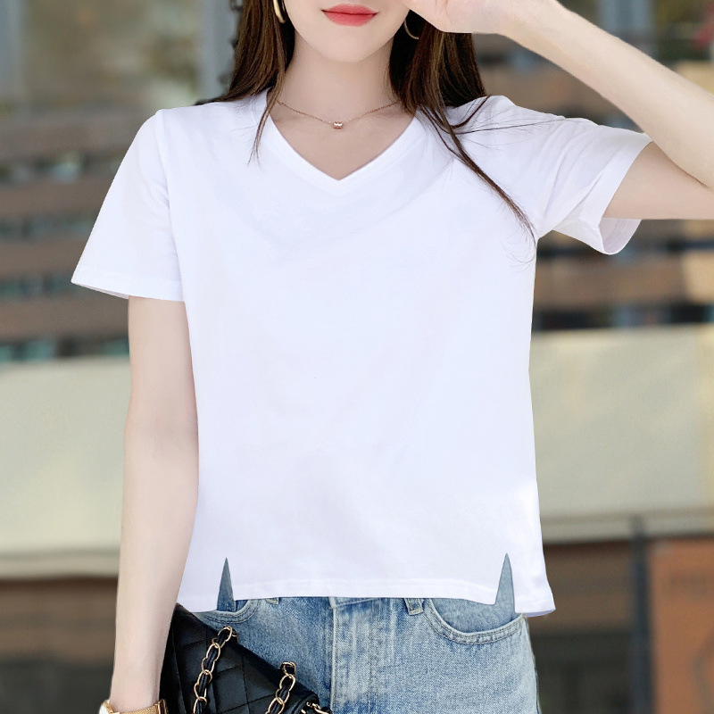 Главная страница > Черная свободная футболка с v-образным вырезом, женская летняя футболка с короткими рукавами из чистого хлопка на правое плечо, модный топ с разрезом в корейском стиле
