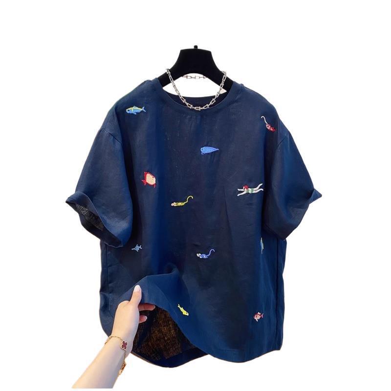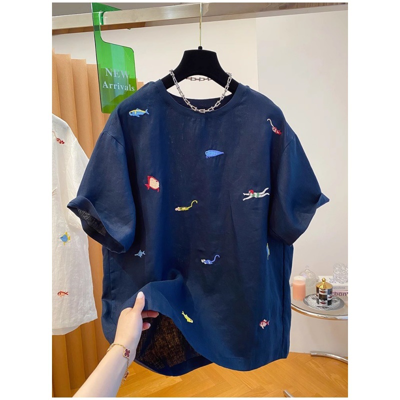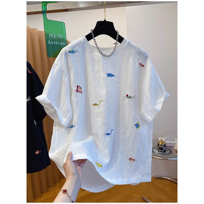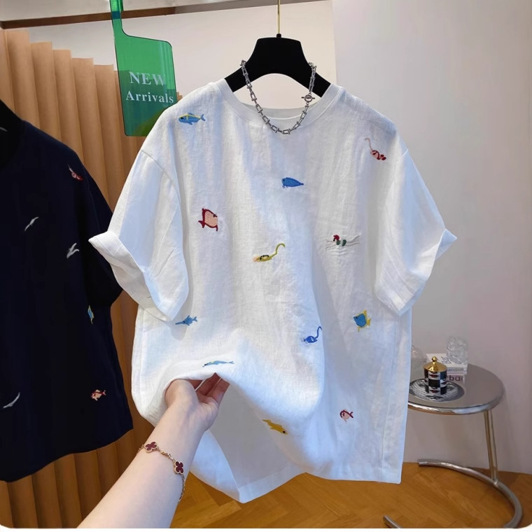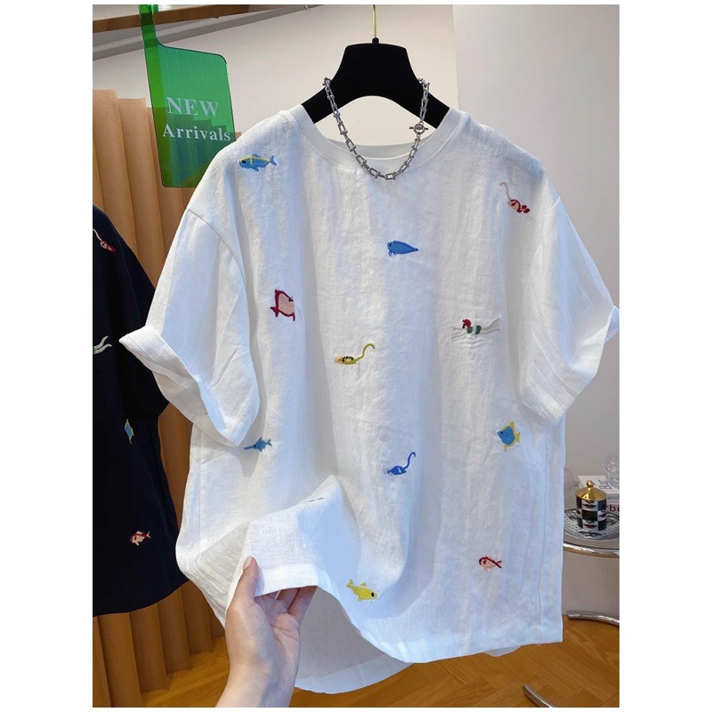 Главная страница > Высококачественная белая универсальная футболка женская с короткими рукавами, новинка 2025 года, свободный пуловер в европейском стиле с круглым вырезом, летний топ из хлопка и льна