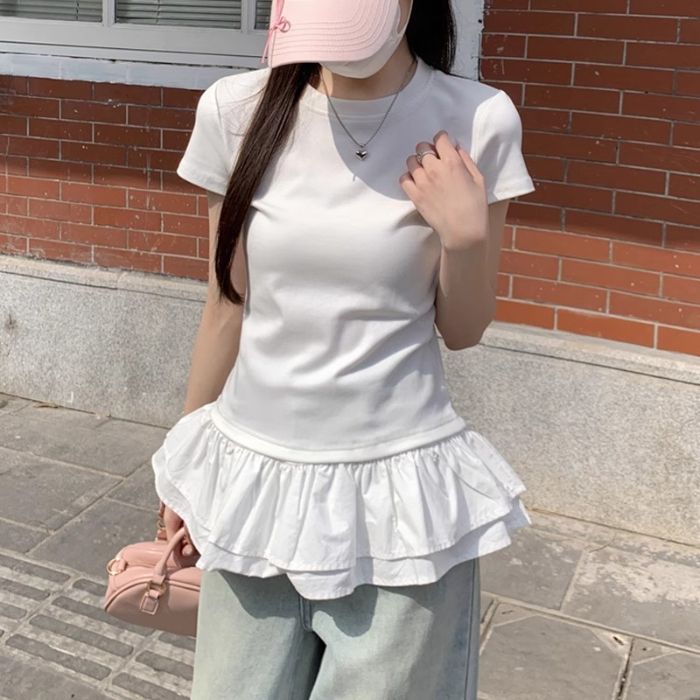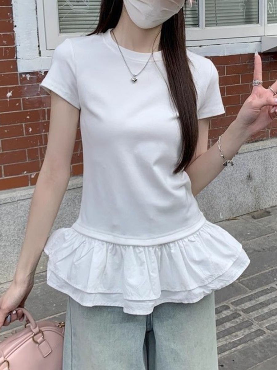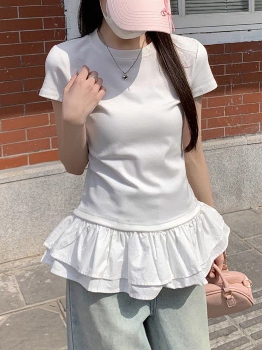 2025 новых летних женских топов в французском и корейском стиле, нежные и шикарные, премиум-класса, с коротким рукавом