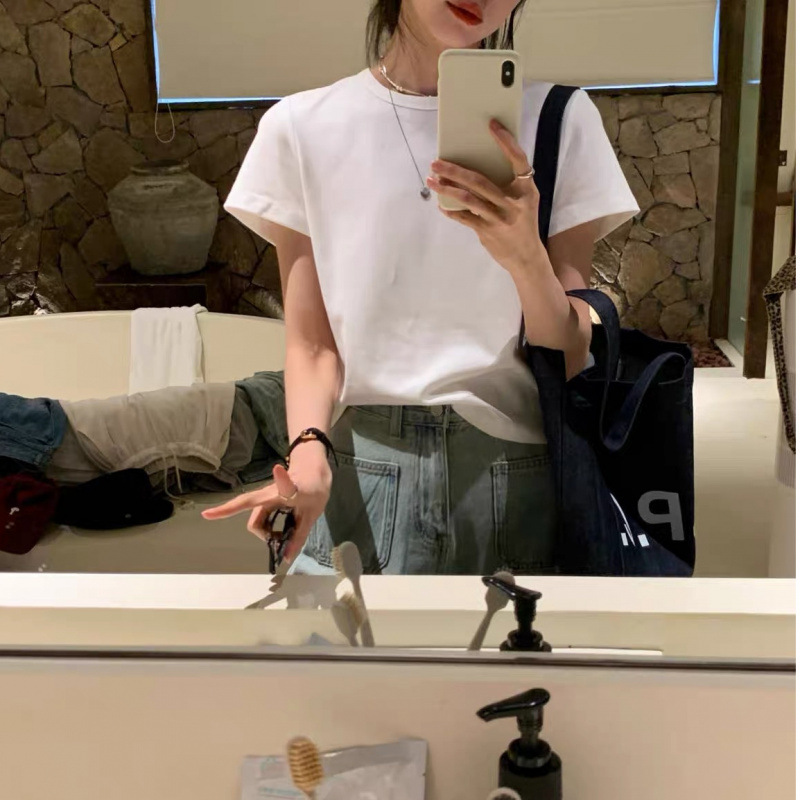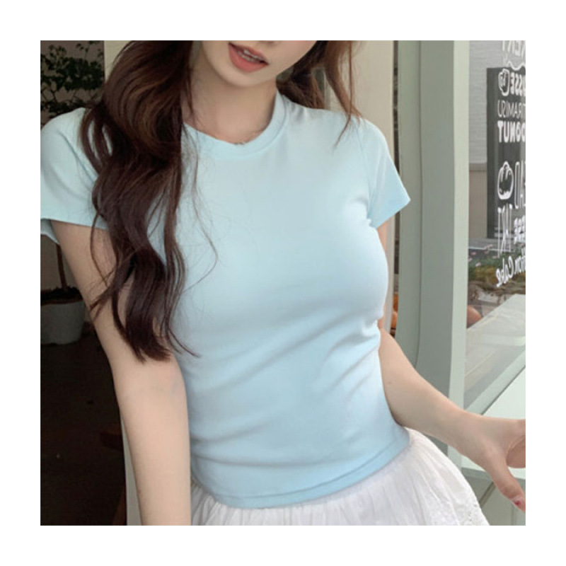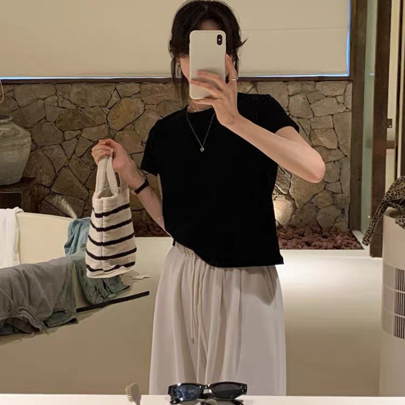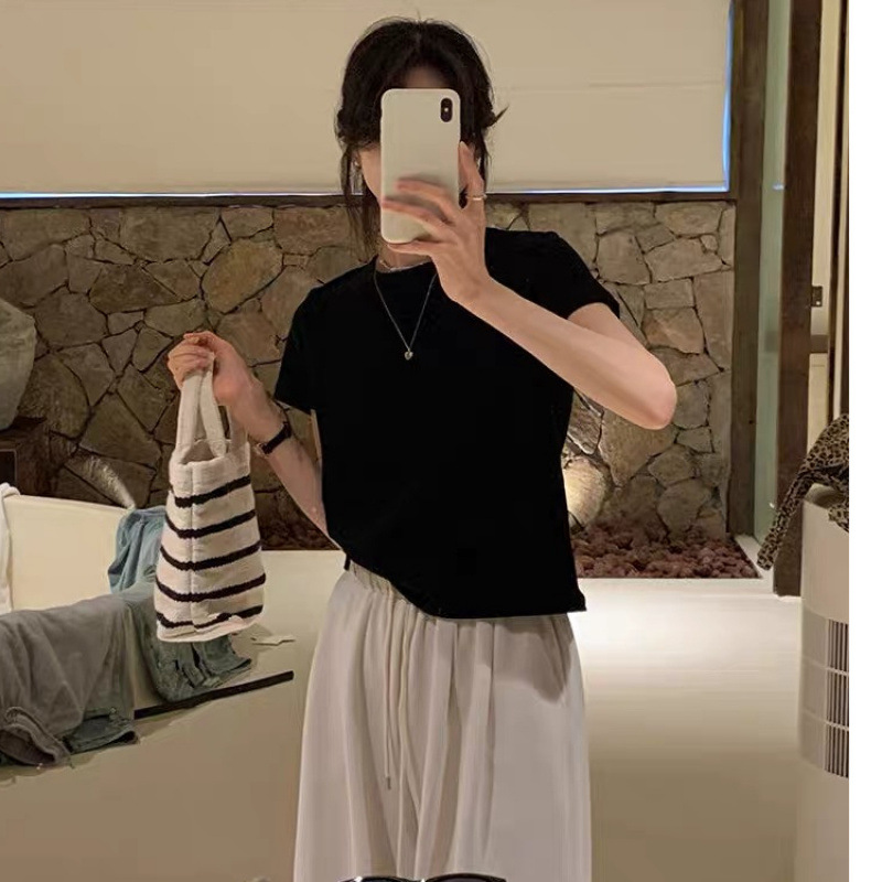 Главная страница > 2025 новая черная футболка женская с коротким рукавом летняя базовая майка с облегающим кроем и стильными сексуальными топами
