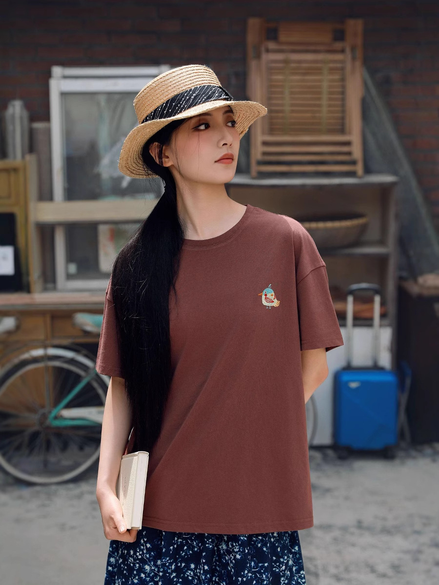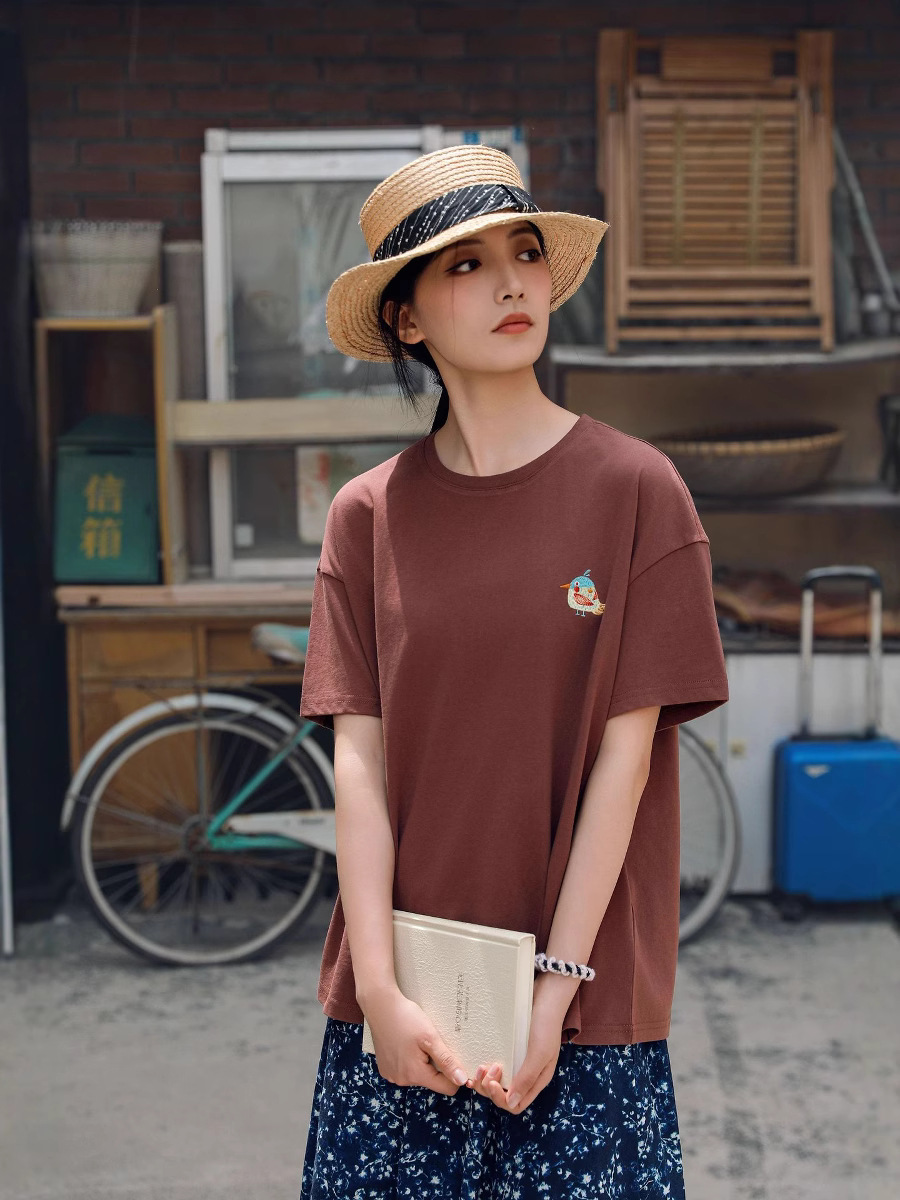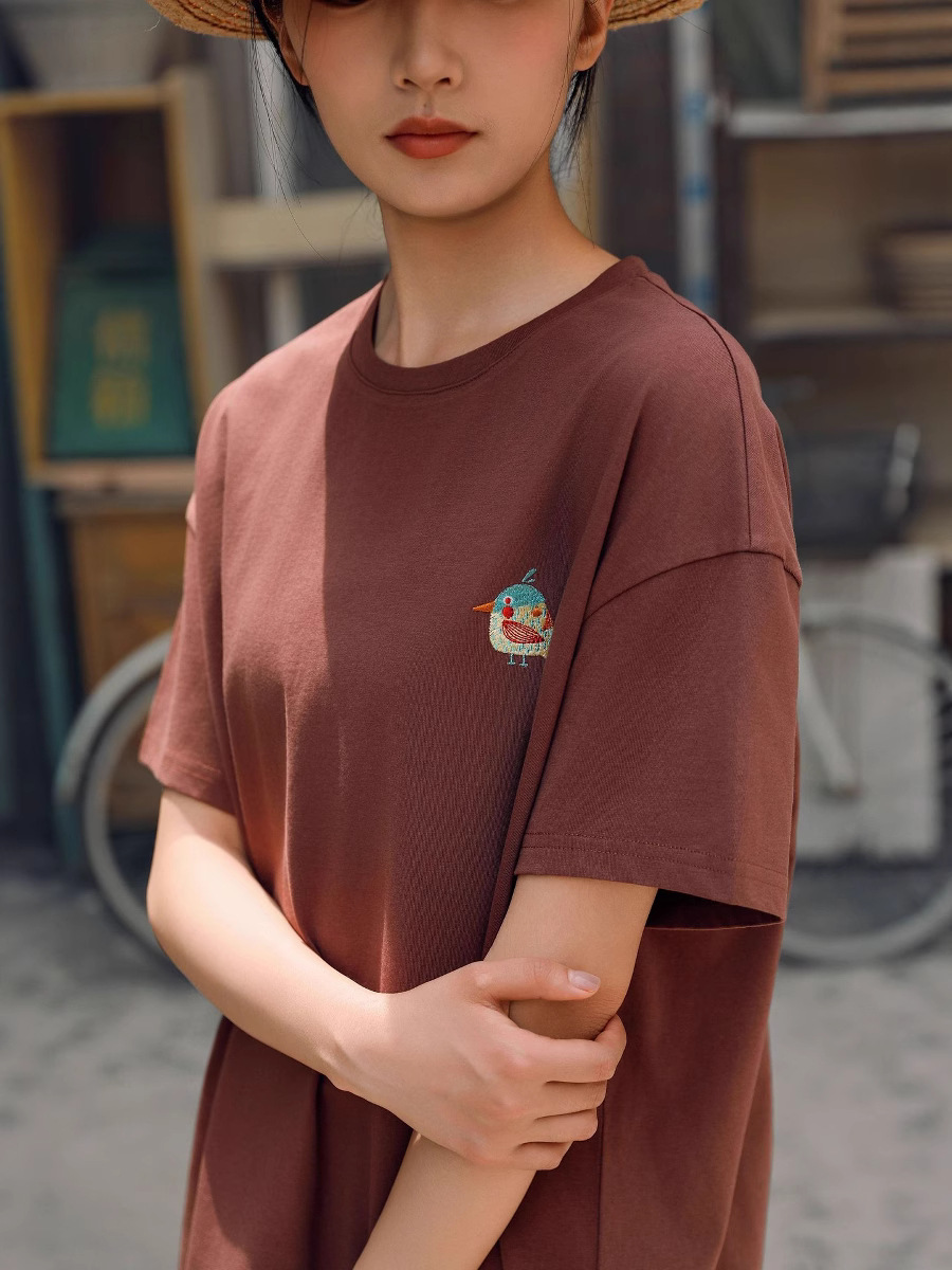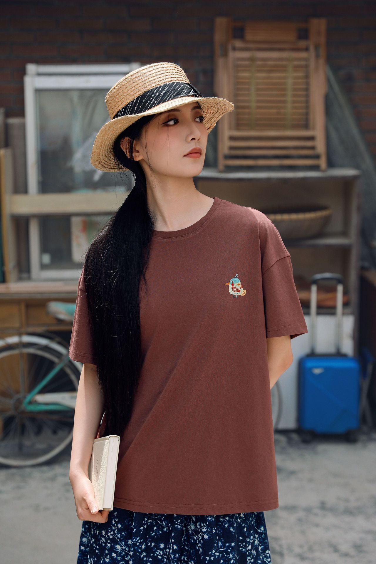 Главная страница > Хлопковая свободная повседневная футболка с вышивкой «Дубовая птица», женский топ с короткими рукавами, летняя литературная женская одежда