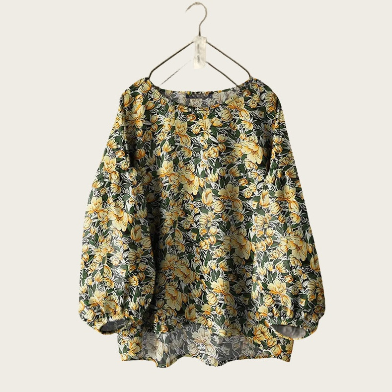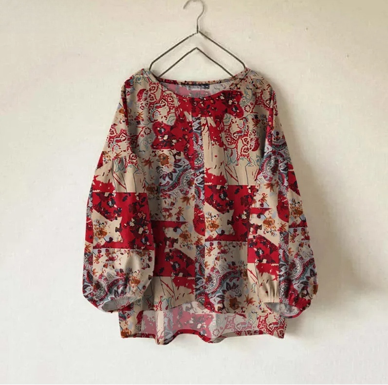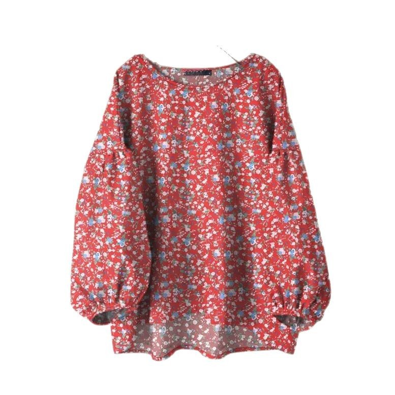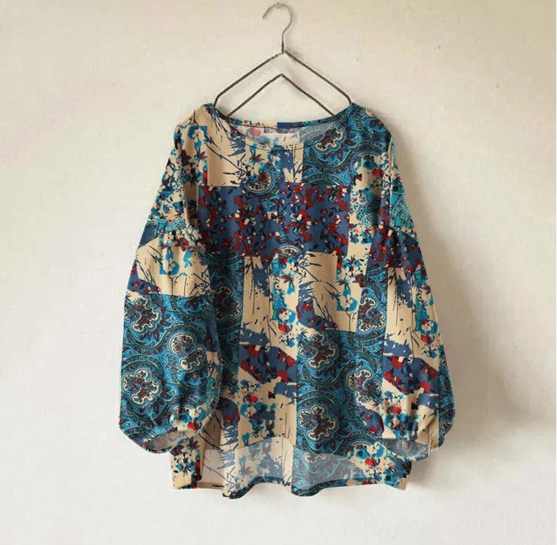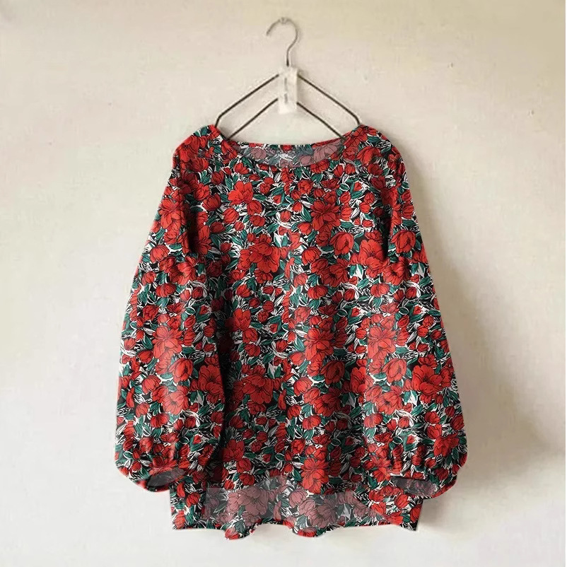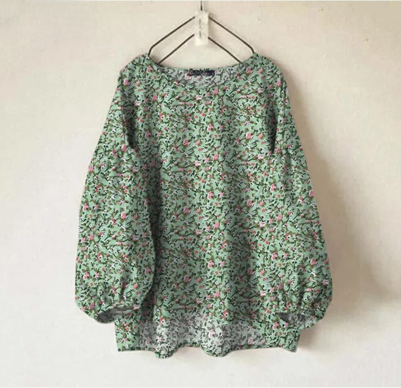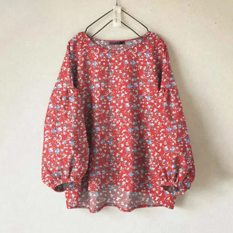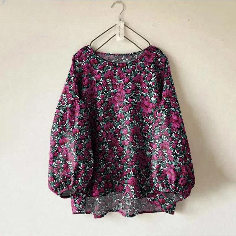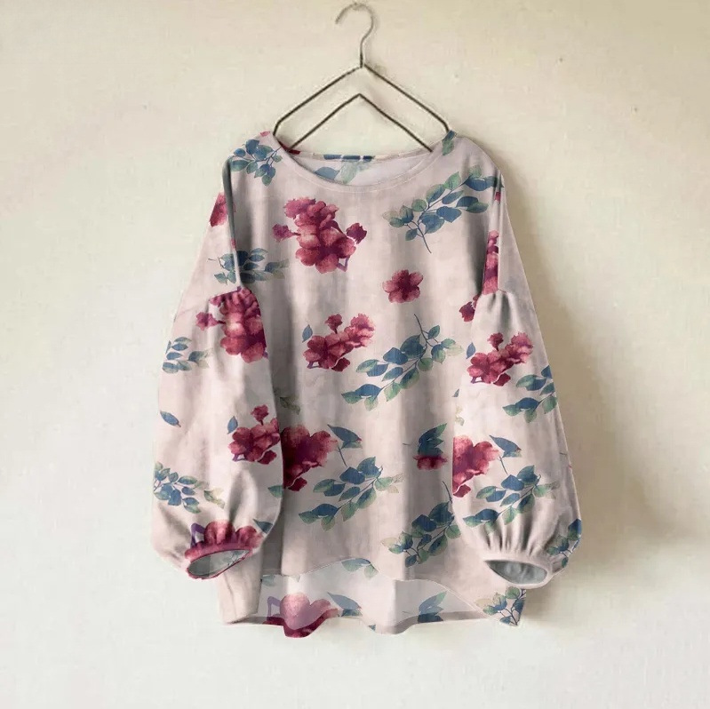 Женская рубашка Amazon, новинка, свободного кроя, однотонная, с круглым вырезом, длинными и пышными рукавами
