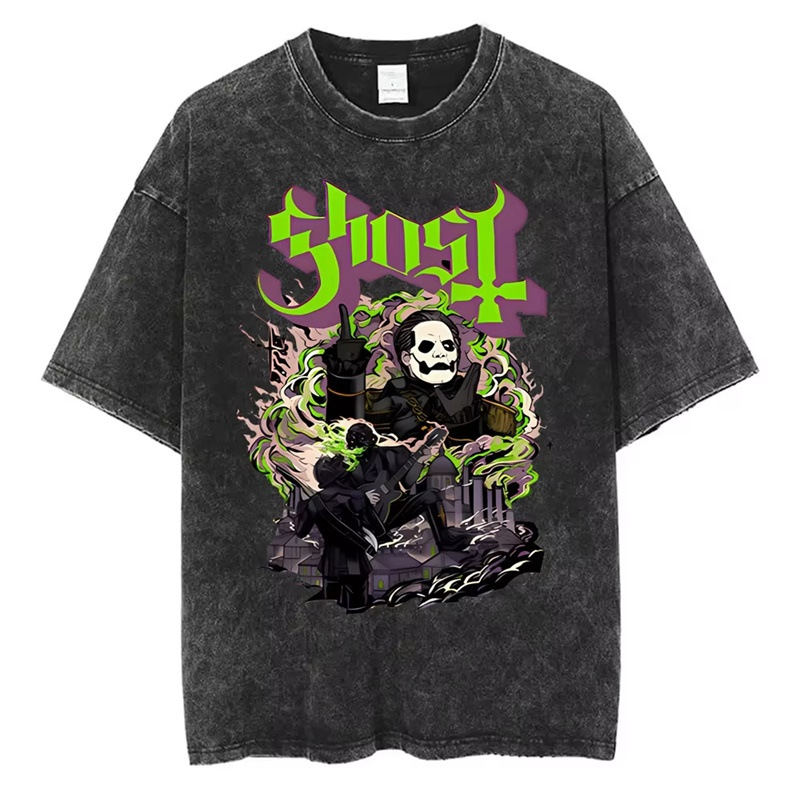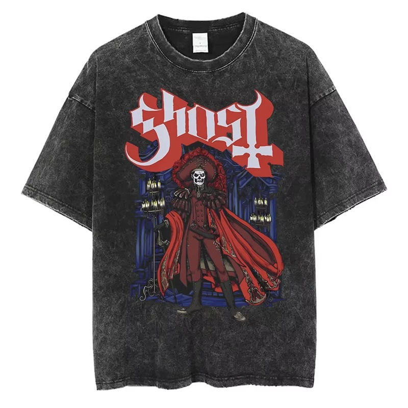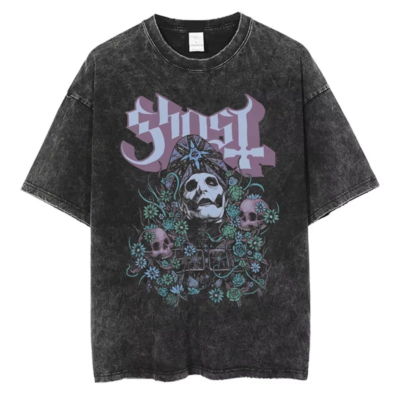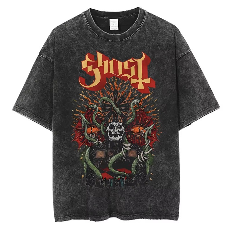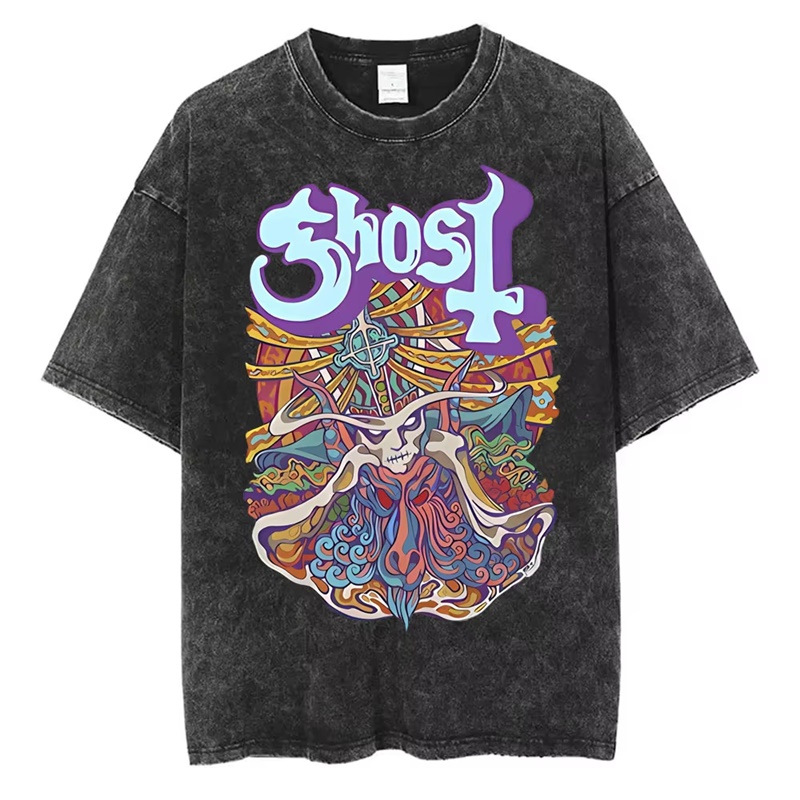 Главная страница > Модный трансграничный пуловер с принтом Ghost Band в стиле ретро, стираный пуловер из чистого хлопка, мужская футболка с короткими рукавами, свободная мужская футболка с круглым вырезом