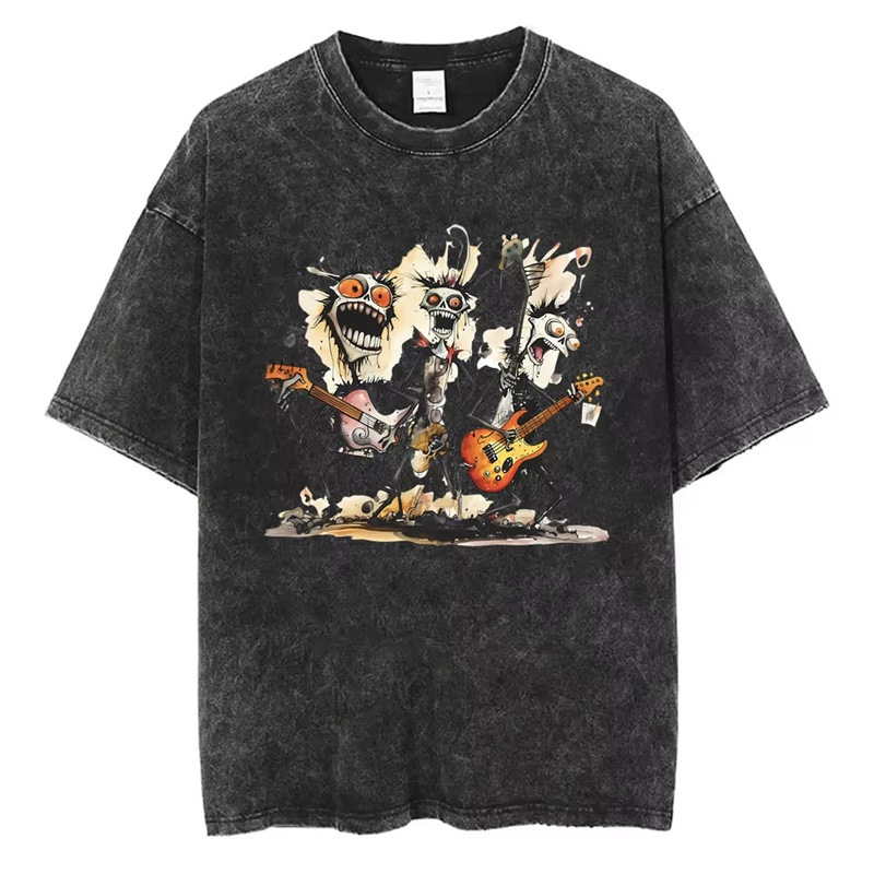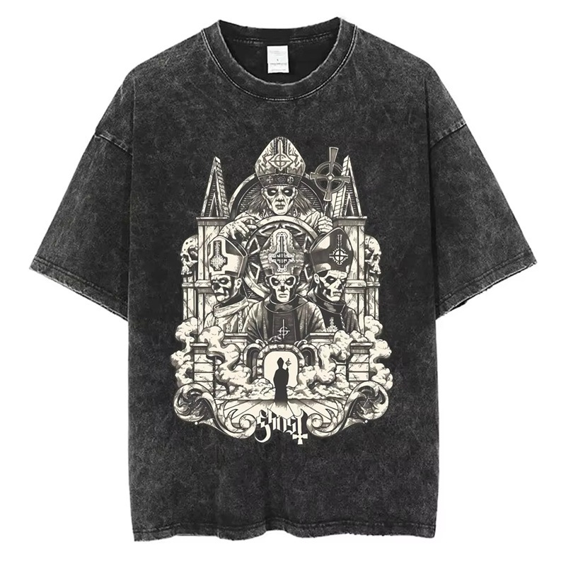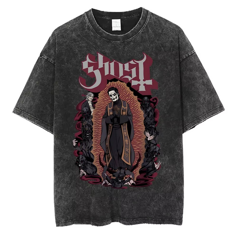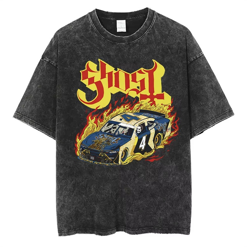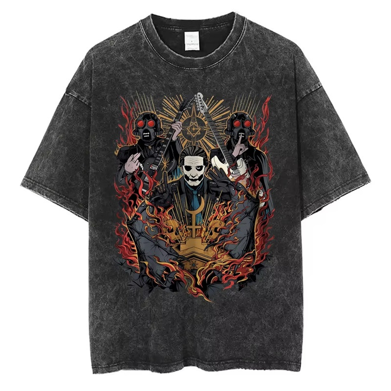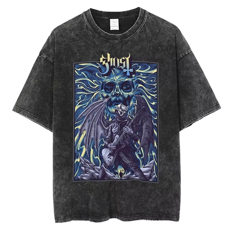 Главная страница > Модный трансграничный пуловер с принтом Ghost Band в стиле ретро, стираный пуловер из чистого хлопка, мужская футболка с короткими рукавами, свободная мужская футболка с круглым вырезом