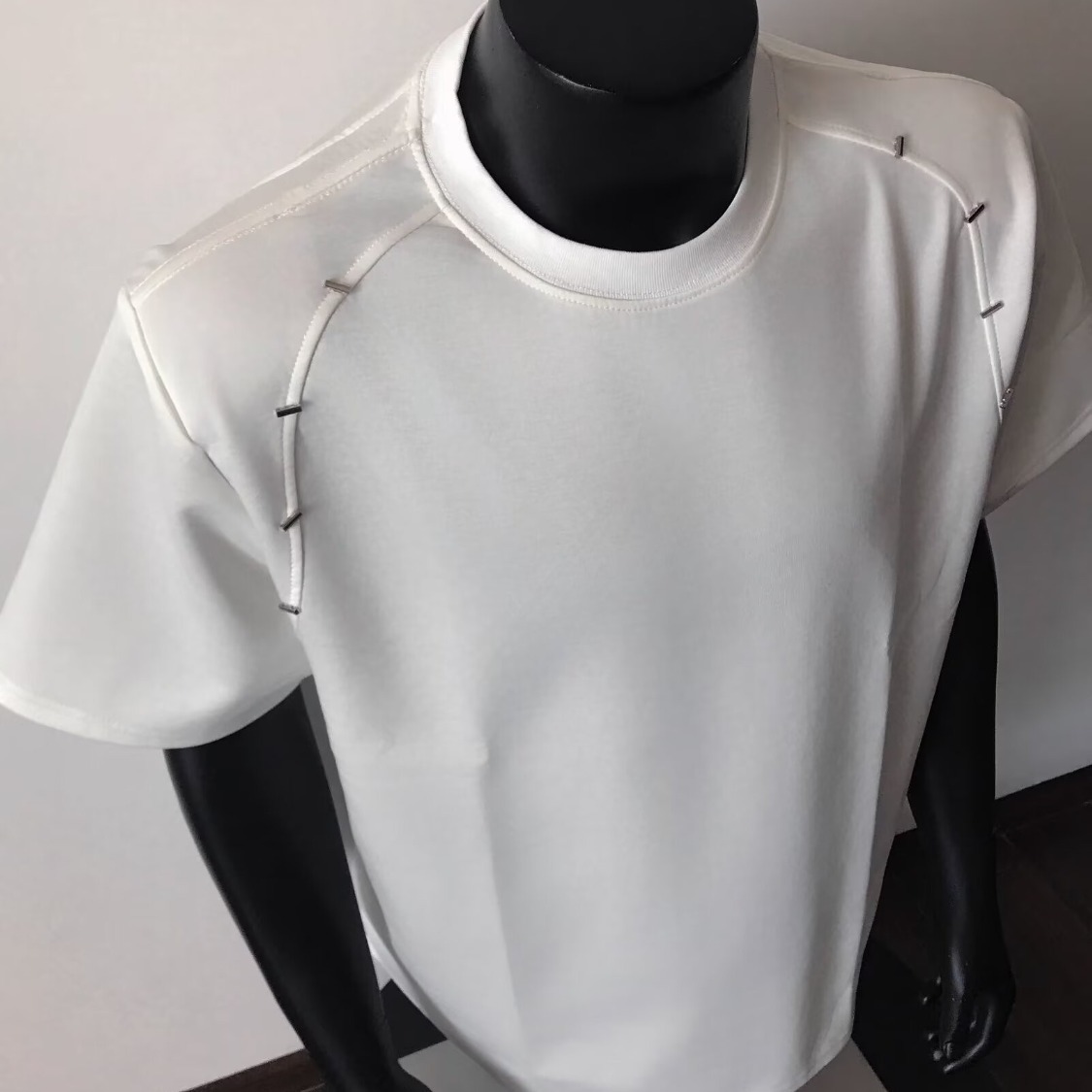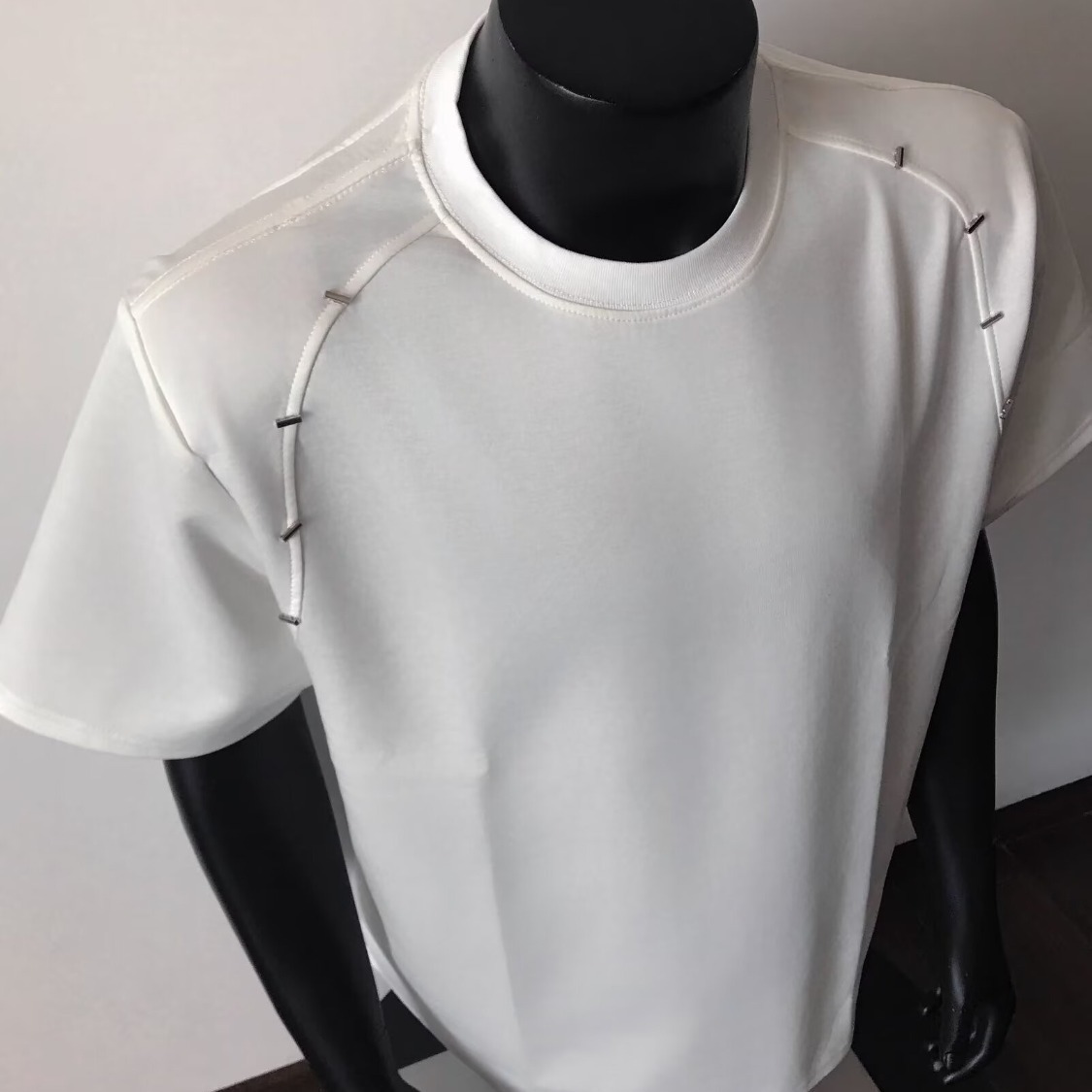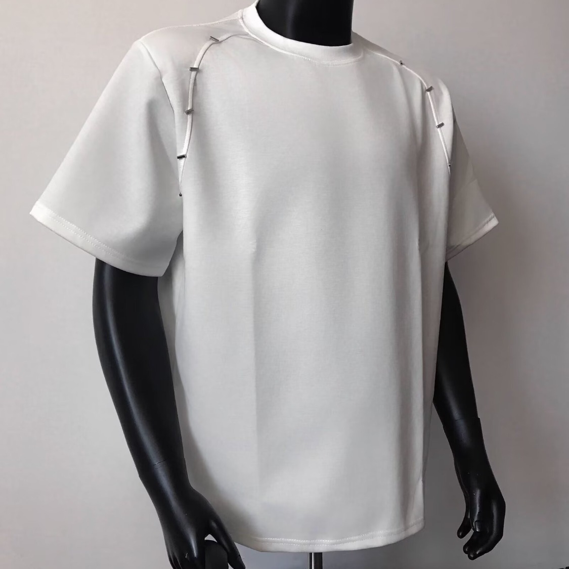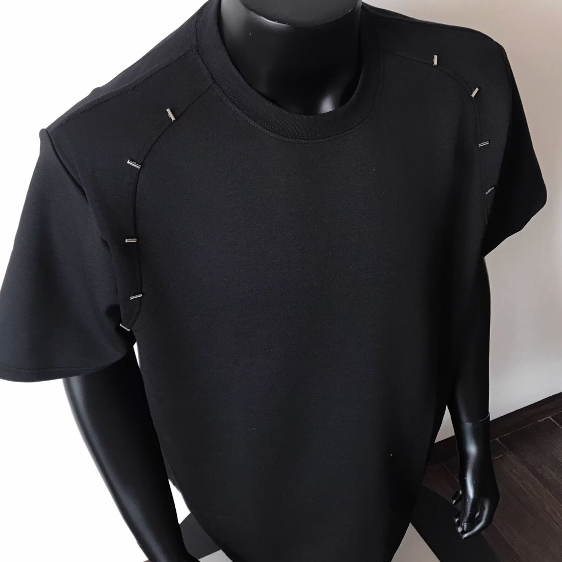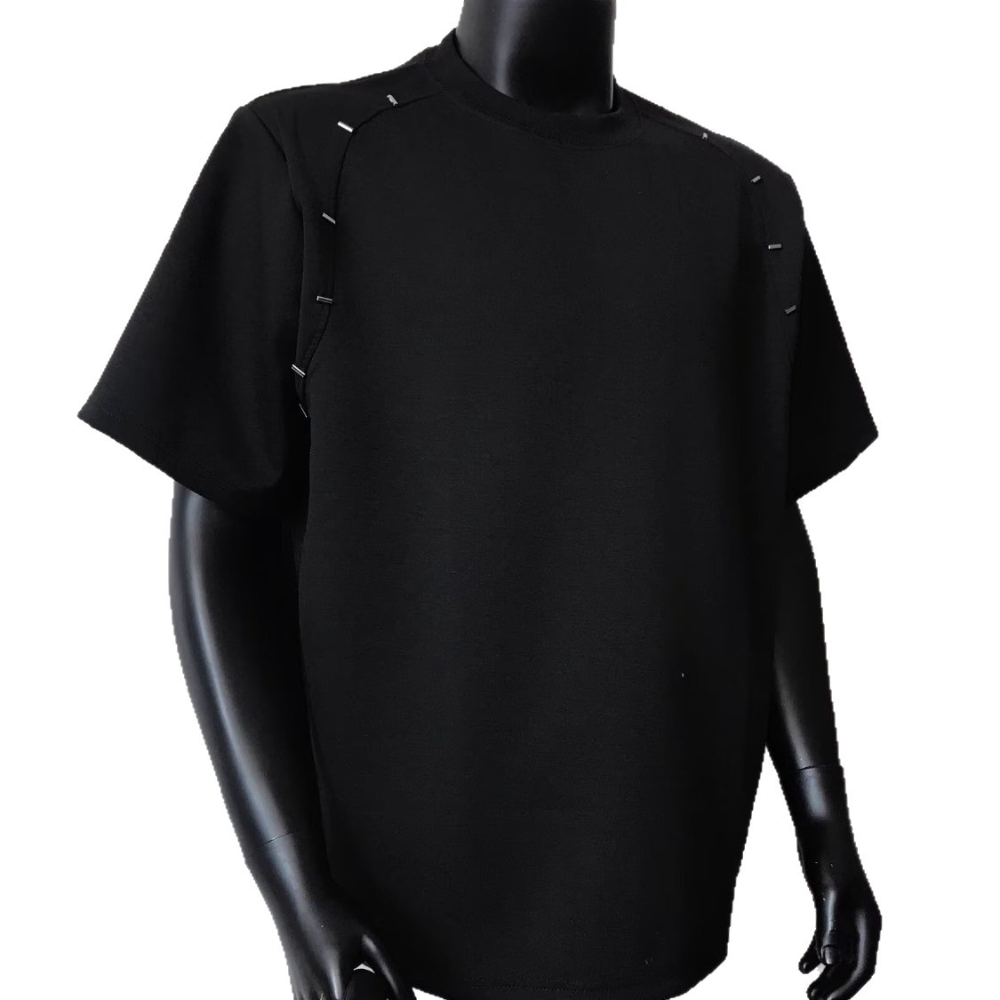 Главная страница > Американская уличная черная мужская летняя футболка с короткими рукавами и подплечниками, дизайн с заклепками, круглый вырез, правое плечо, рукава пять четвертей
