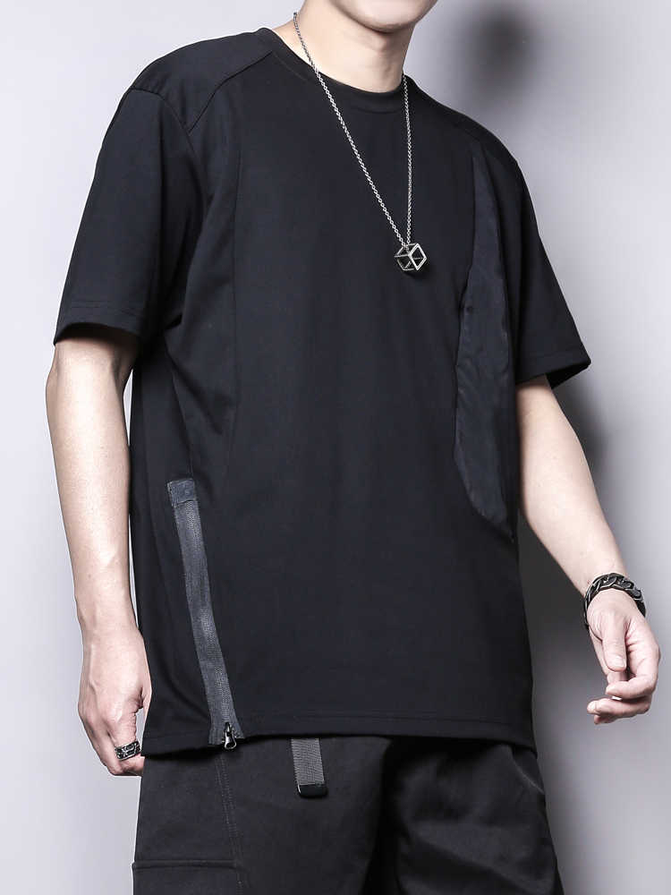Главная страница > Темная асимметричная молния, деконструированный функциональный дизайн, футболка с короткими рукавами, мужская футболка с половиной рукавов