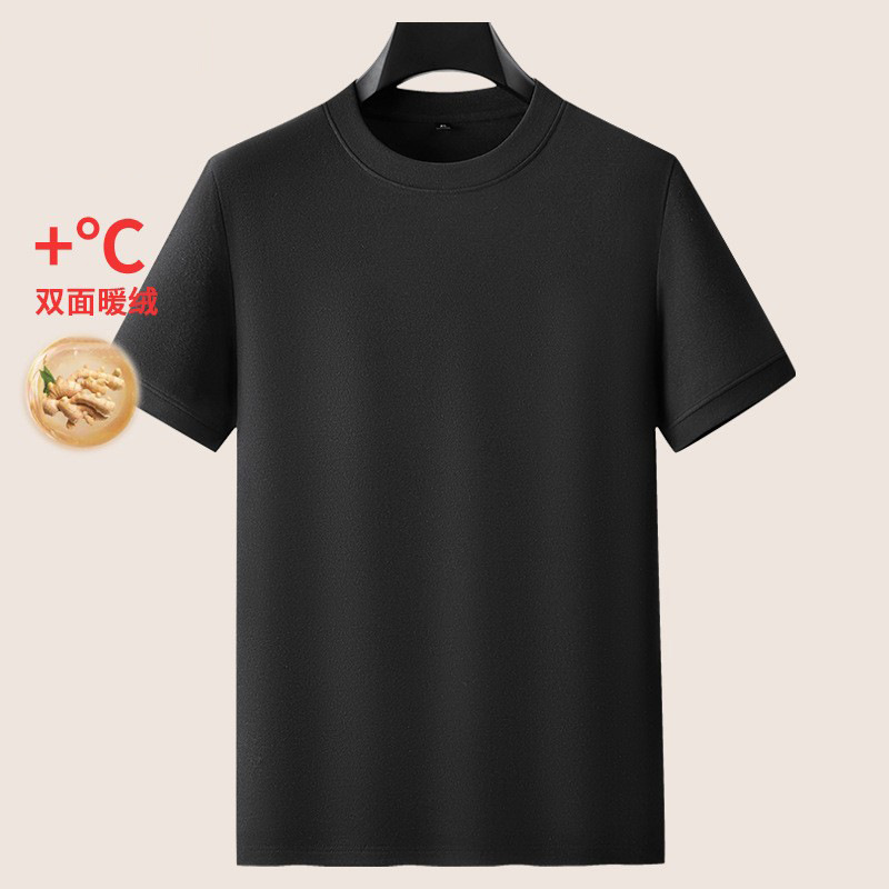 Толстяк 2024 осенью и зимой толстый большой размер с круглым вырезом с короткими рукавами футболка мужская нижняя рубашка повседневная двусторонняя теплая куртка