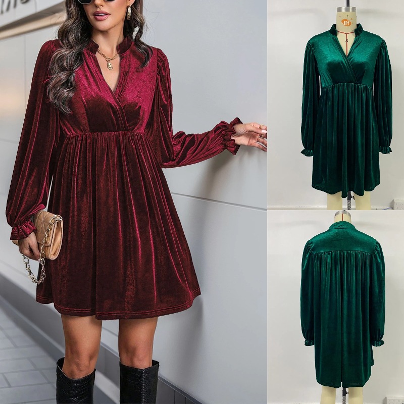Главная страница > Внешняя торговля TK новый 2024 осень и зима новый трансграничный женский европейский и американский бархатное платье с длинными рукавами