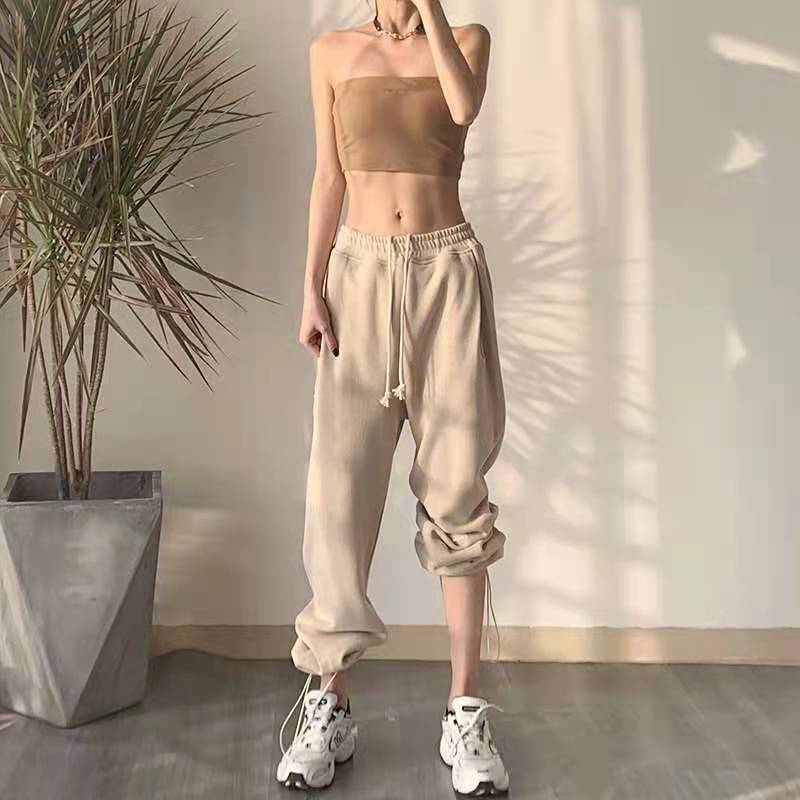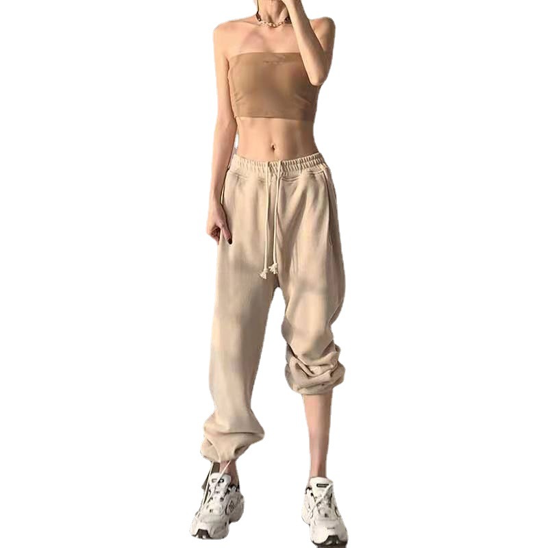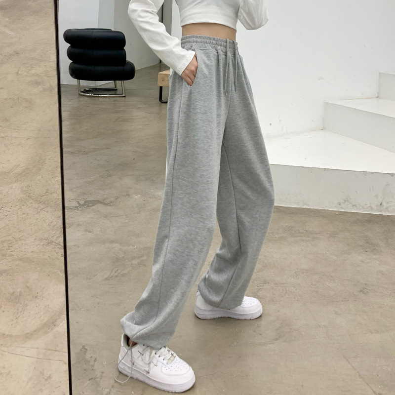 Главная страница > Серые спортивные брюки женские свободные завязки на щиколотке весна-осень 2022 новые стройнящие универсальные прямые повседневные брюки с широкими штанинами