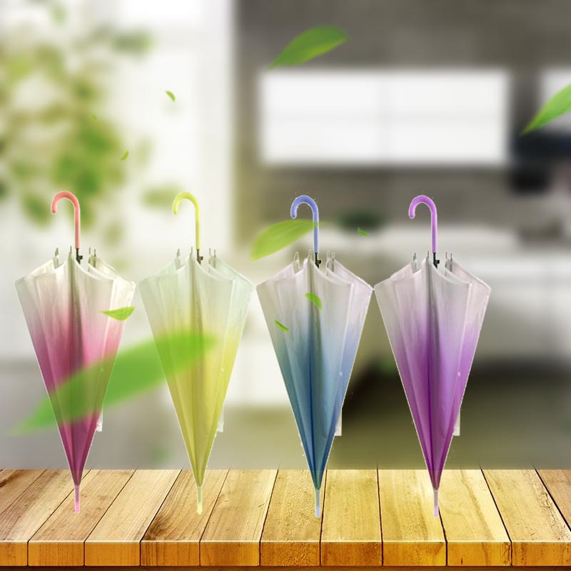 Главная страница > Креативный автоматический длинный стебель прямой прозрачный зонт для детей градиент прозрачный зонт оптовая реклама зонт для логотипа