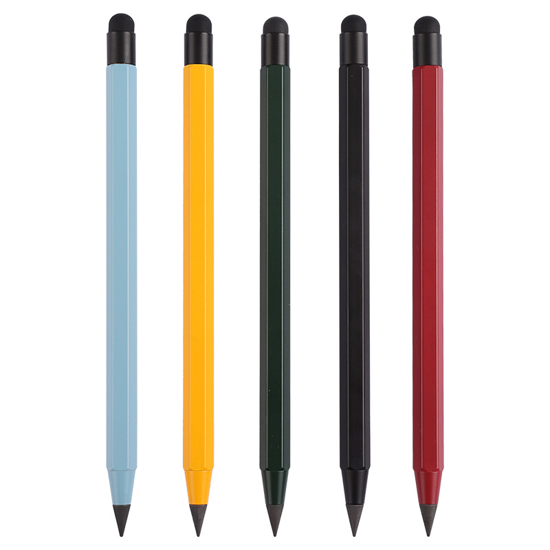 Шестиугольный металлический стержень Вечный карандаш Черная технология Конденсаторная головка Сенсорный экран и карандаш для письма без чернил для студентов