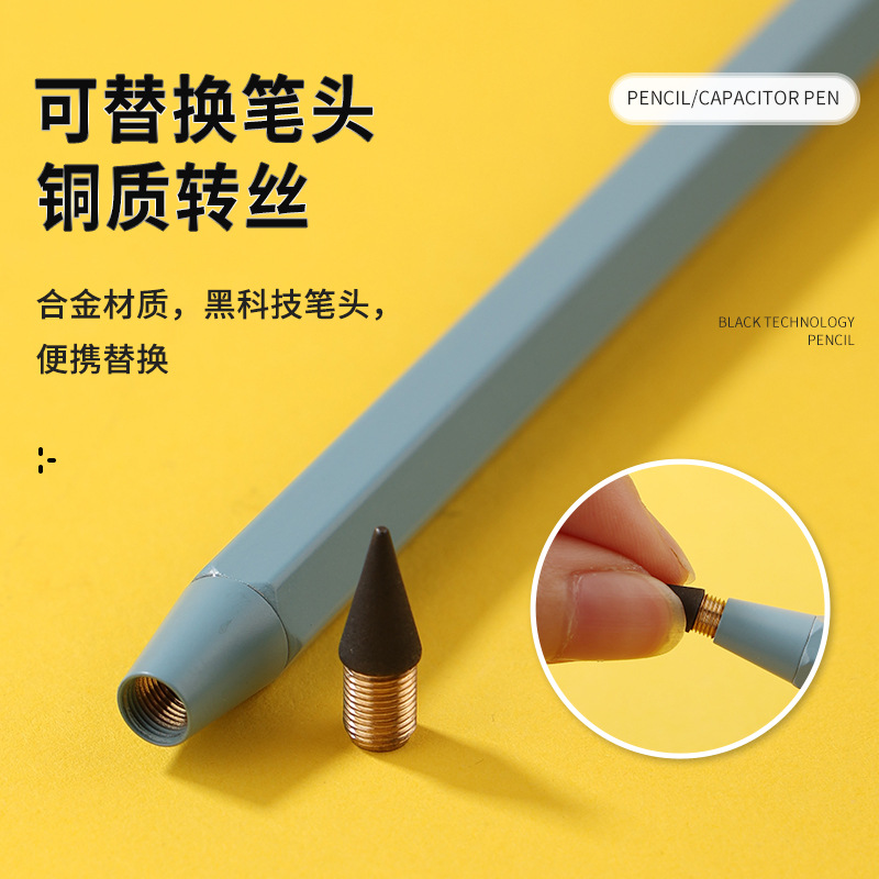 Главная страница > Шестиугольный металлический стержень Вечный карандаш Черная технология Конденсаторная головка Сенсорный экран и карандаш для письма без чернил для студентов