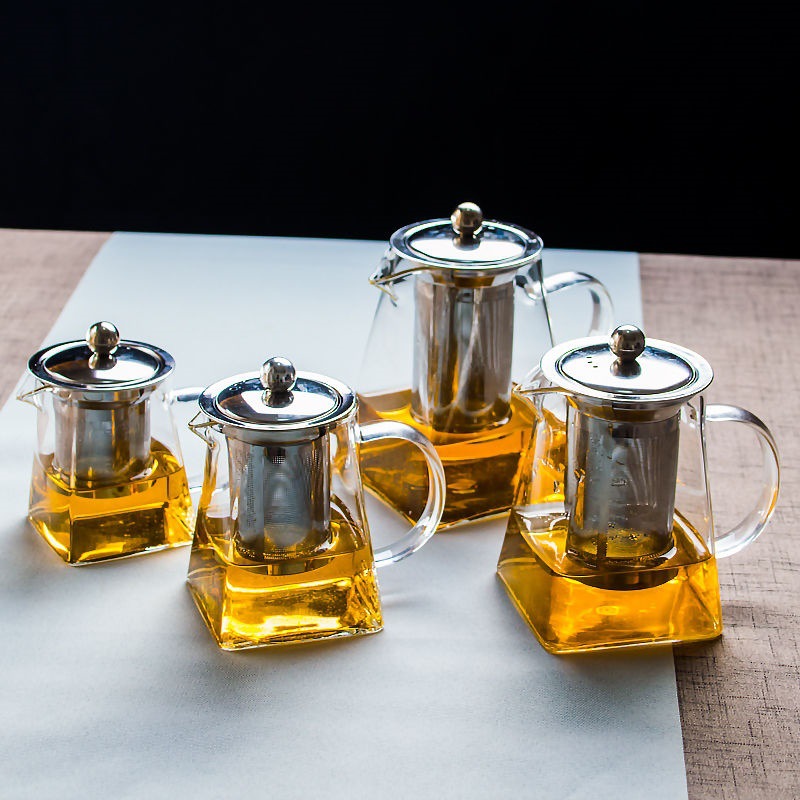 Главная страница > Прозрачный стеклянный чайник с квадратным дном Фильтр из нержавеющей стали с несколькими спецификациями Пуэр Чайник Бытовой прозрачный стеклянный чайник
