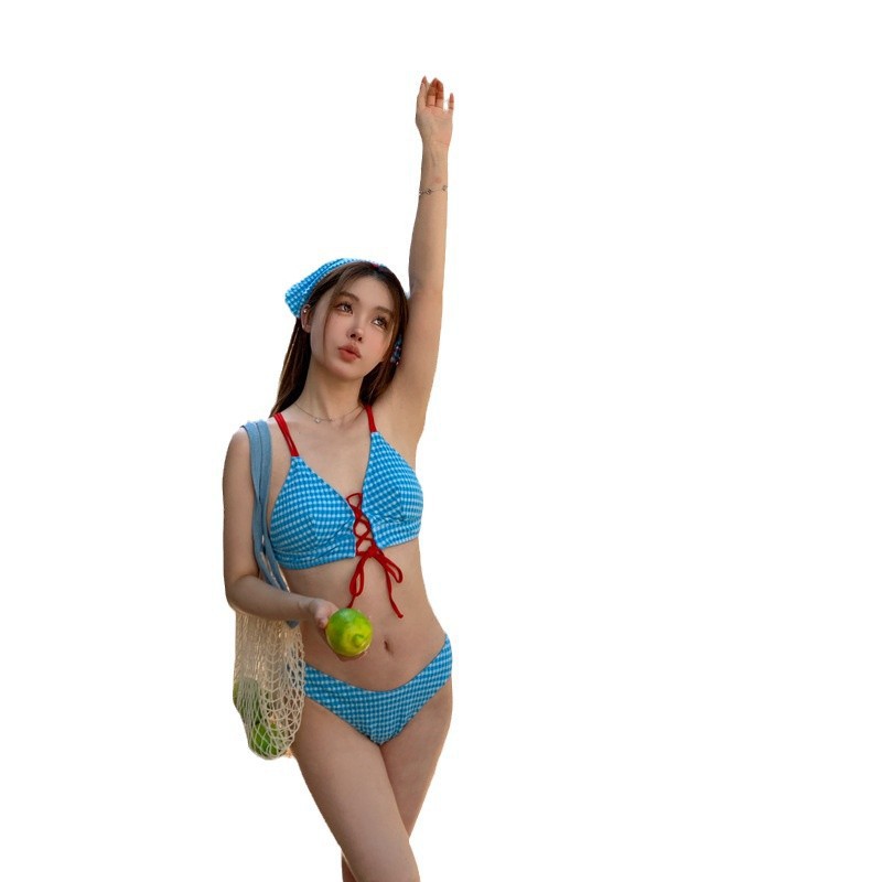 Главная страница > Японский и корейский женский купальник в клетку, маленькая грудь, скрывающая утягивающее миниатюрное бикини из двух частей Booboo 2562