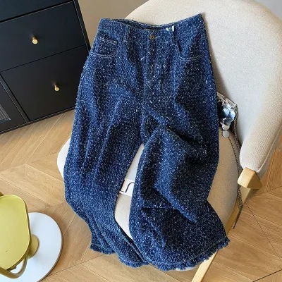 Главная страница > Чувство текстуры джинсовый твидо маленькие ароматные широкие брюки женские 2025 новые модные темпераментные прямые брюки повседневные брюки