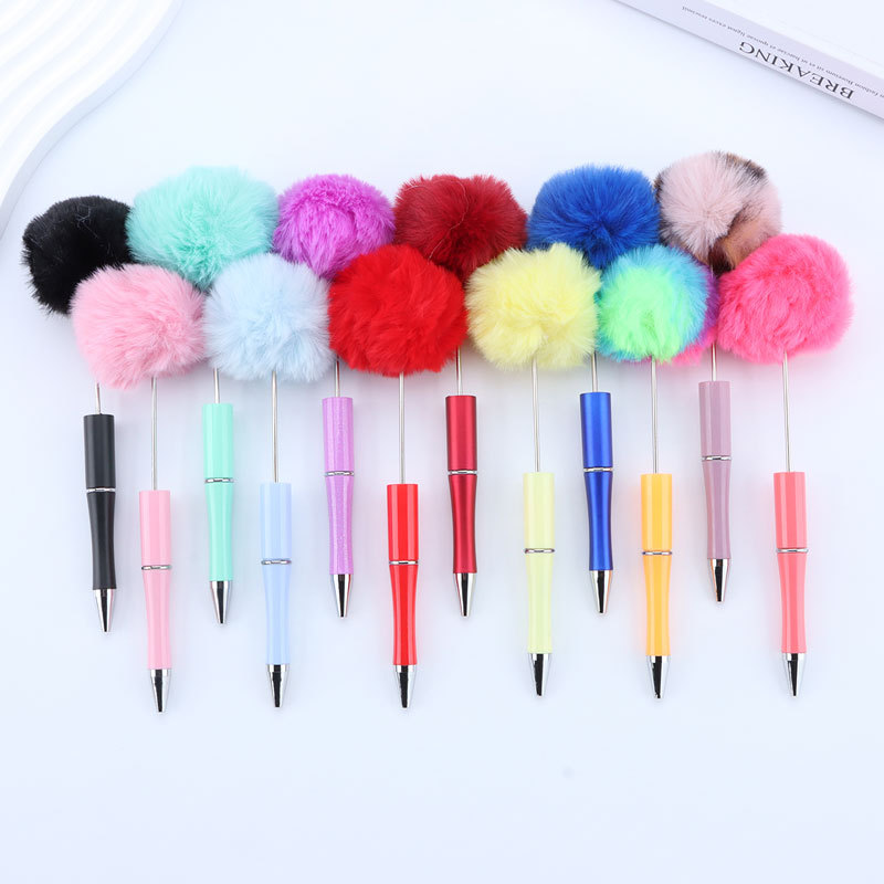 DIY шерстяной шарик с бисером ручка милая девушка сердце шерстяная ручка милая шариковая ручка пушистая пластиковая ручка с бисером