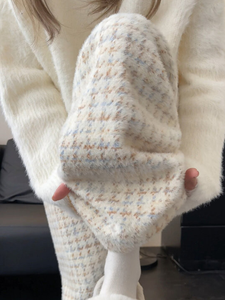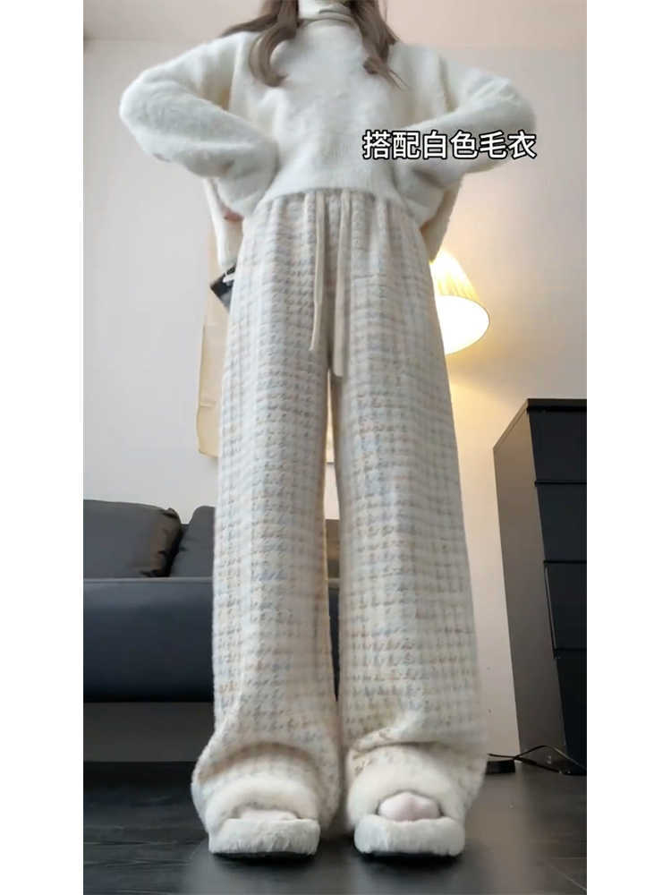 Главная страница > Белые брюки из тысячи птиц женские высокие талии вертикальные прямые 2024 новые весенние и осенние повседневные узкие женские брюки с широкими ногами в клетку