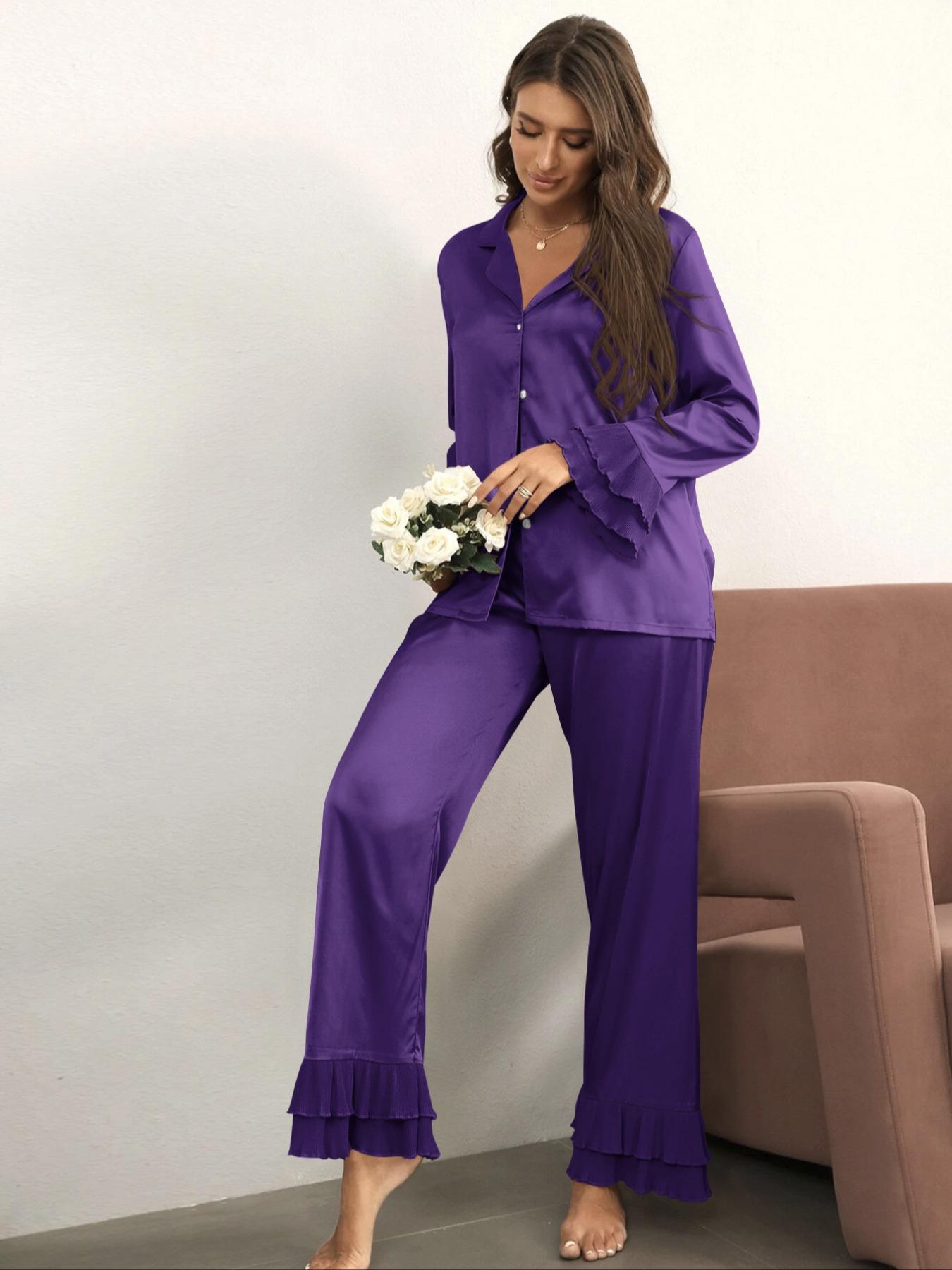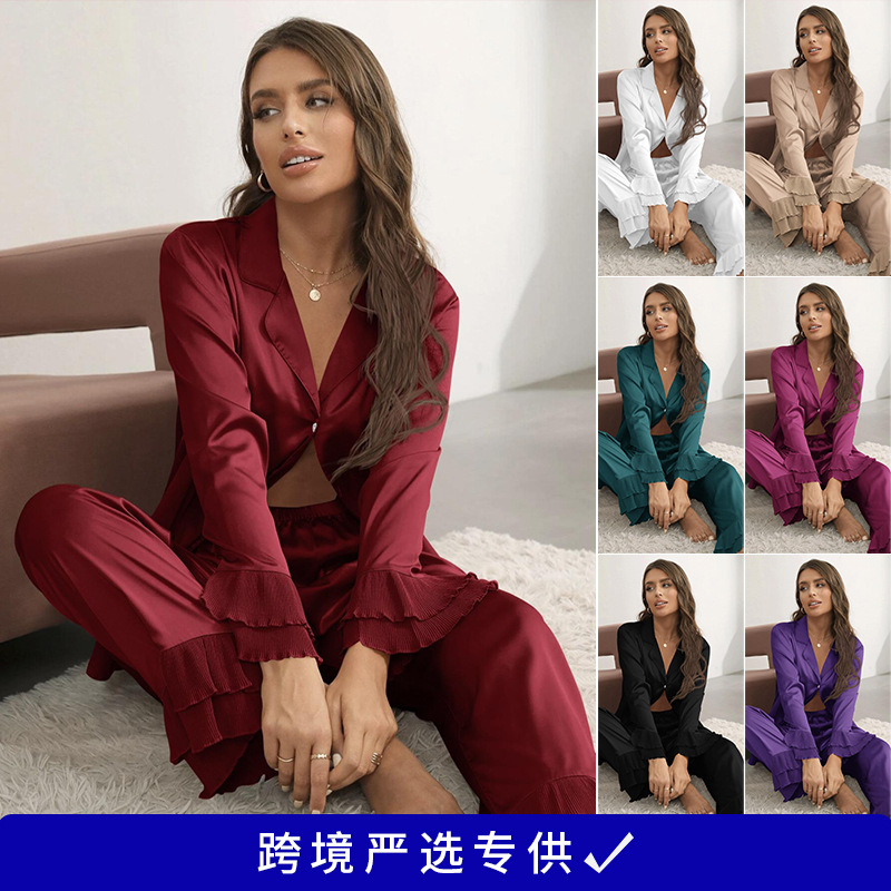 Главная страница > Имитация шелковой пижамы женская домашняя одежда из двух частей трансграничные брюки с длинными рукавами можно носить на улице pajamas,pjs