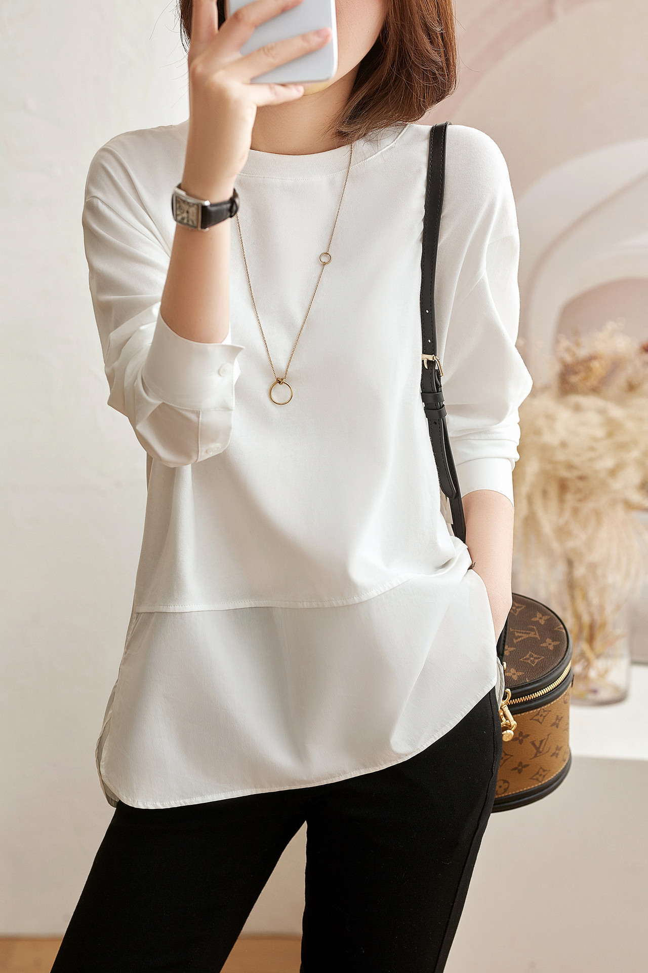 Главная страница > Японская легкая роскошная белая свободная футболка с длинным рукавом Женская Осень 2021 новая дизайнерская рубашка с отстрочкой для женщин
