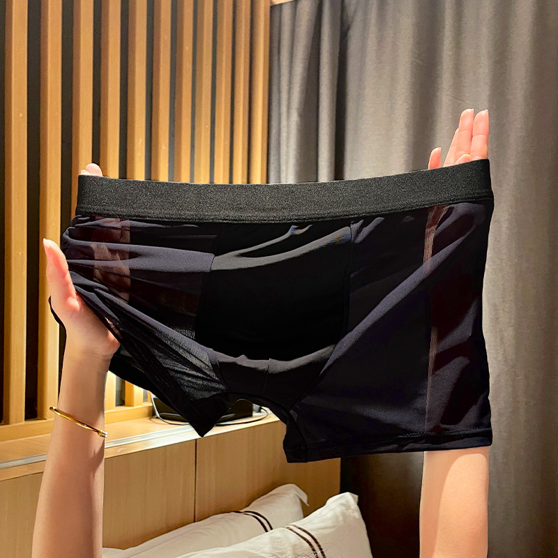 Мужские кружевные трусики мужские четырехугольные летние тонкие ледяные шелковые дышащие сетчатые пряжи мальчики без следов спортивные шорты мужские