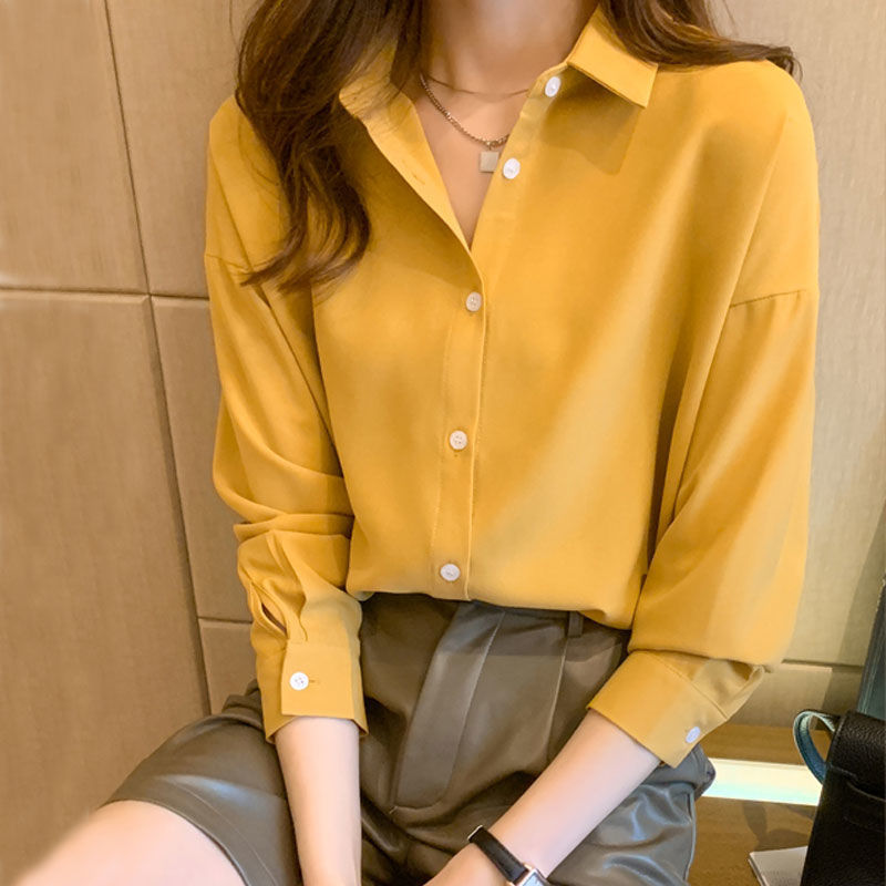 Главная страница > Весной и осенью свободная однотонная шифоновая рубашка больших размеров, Женская Повседневная рубашка в Корейском стиле в гонконгском стиле, рубашка с длинным рукавом, нижняя рубашка