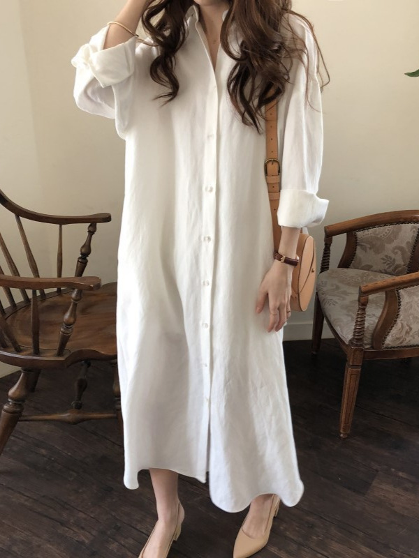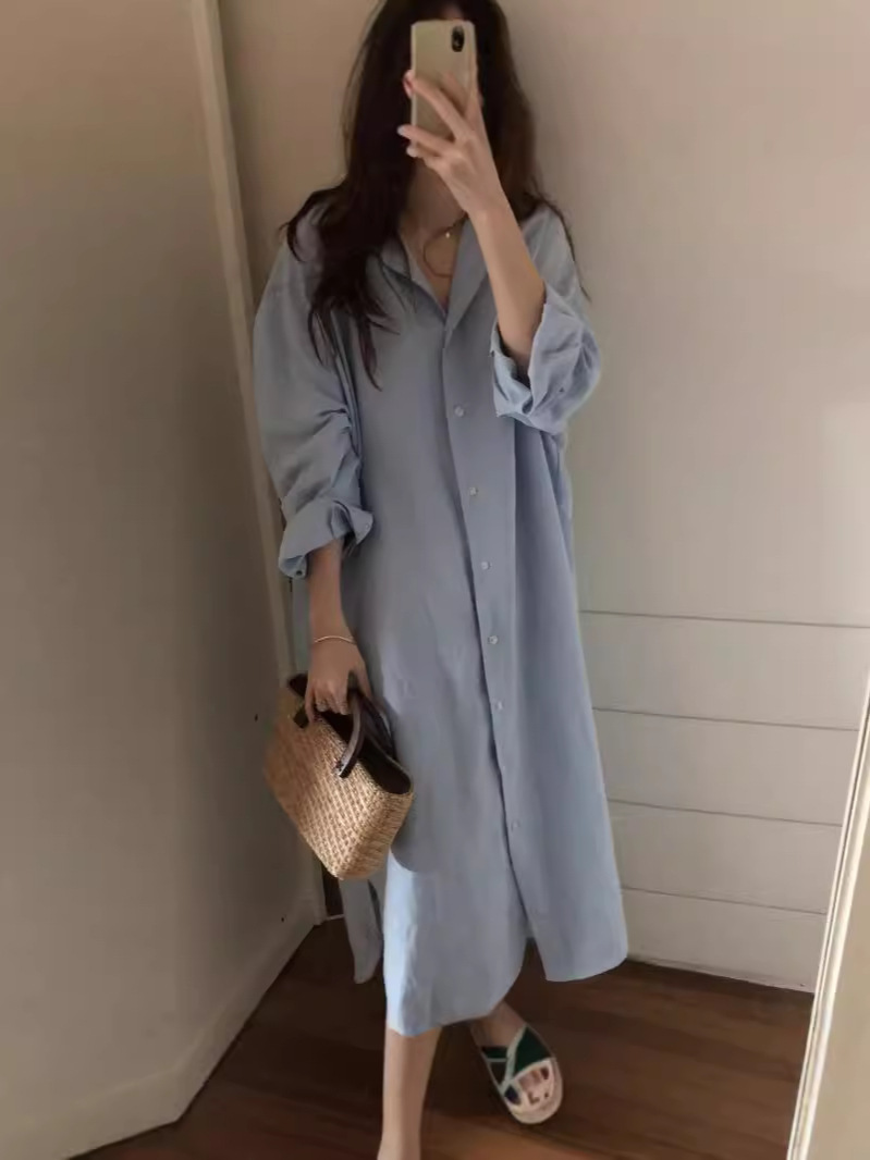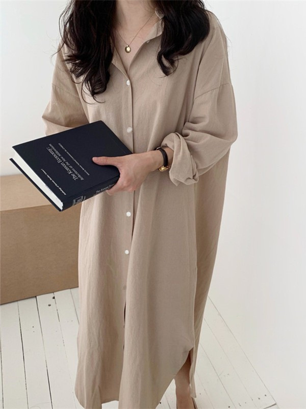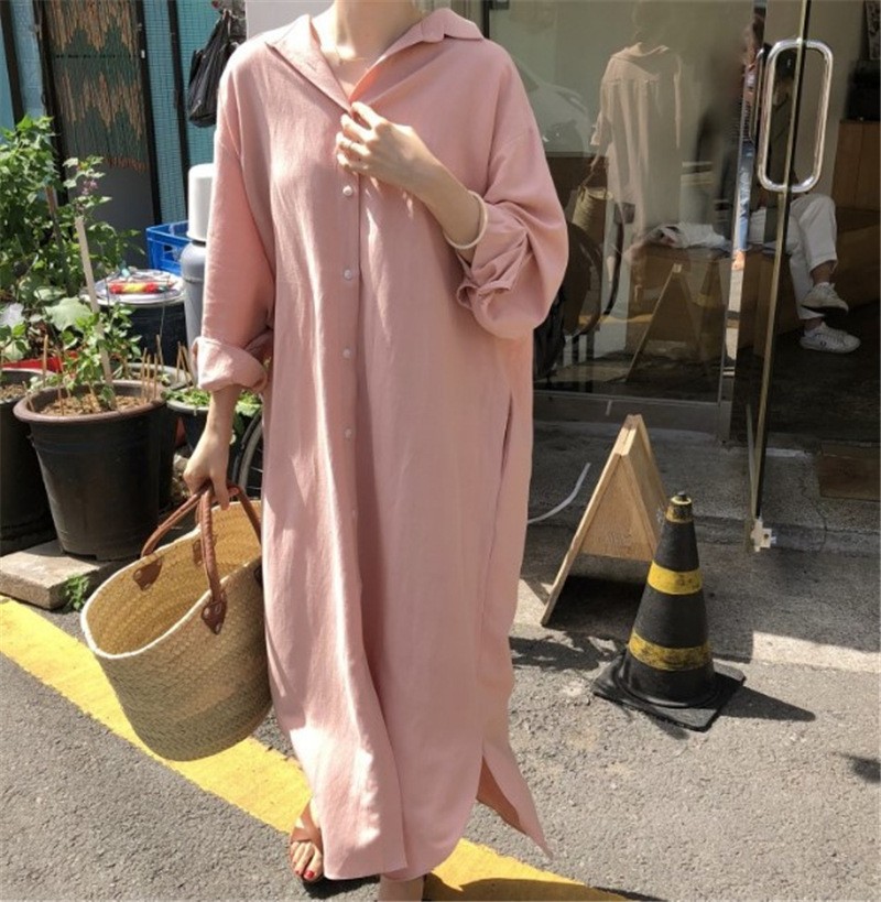 Главная страница > Корейская оригинальная весенне-летняя свободная рубашка большого размера из хлопка и льна с разрезом выше колена, кардиган с лацканами, рубашка, юбка, женская модная