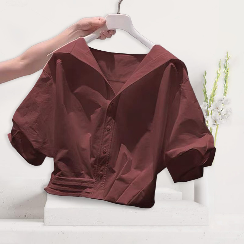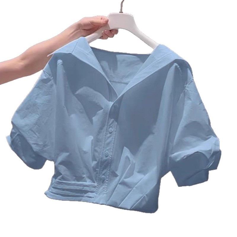 Главная страница > Женская рубашка с короткими рукавами и зелеными лацканами Dopamine, новинка лета 2025 года, милая короткая рубашка для маленьких людей
