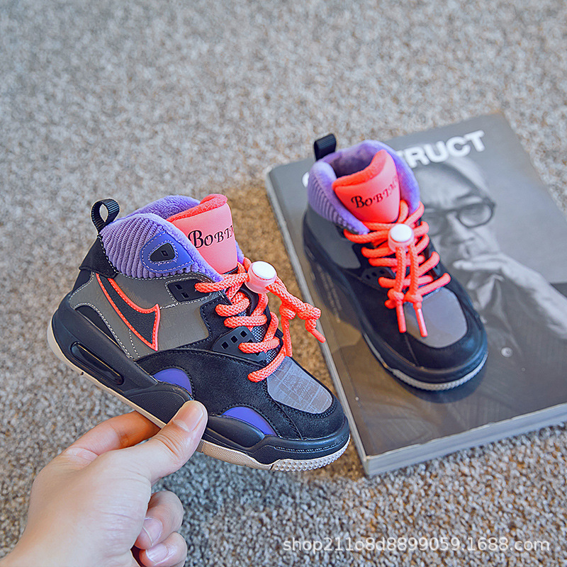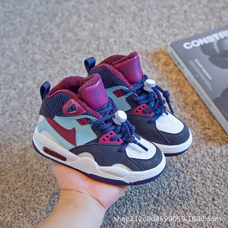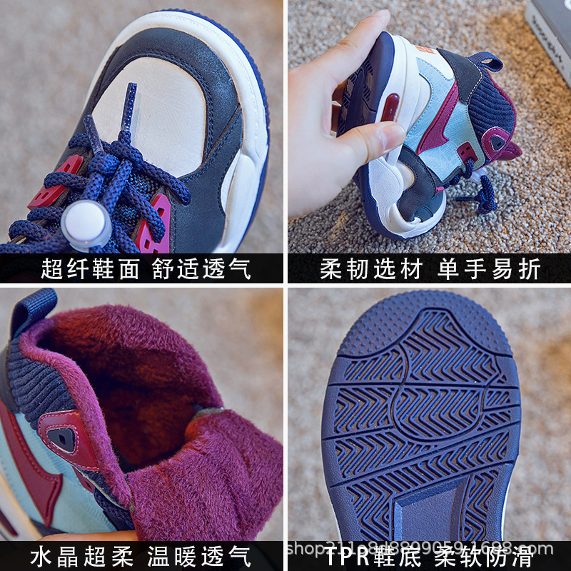 Главная страница > Спортивная Баскетбольная обувь для бега для мальчиков, новинка зимы, модная детская обувь для девочек, повседневная обувь на флисовой подкладке со средним верхом в Корейском стиле