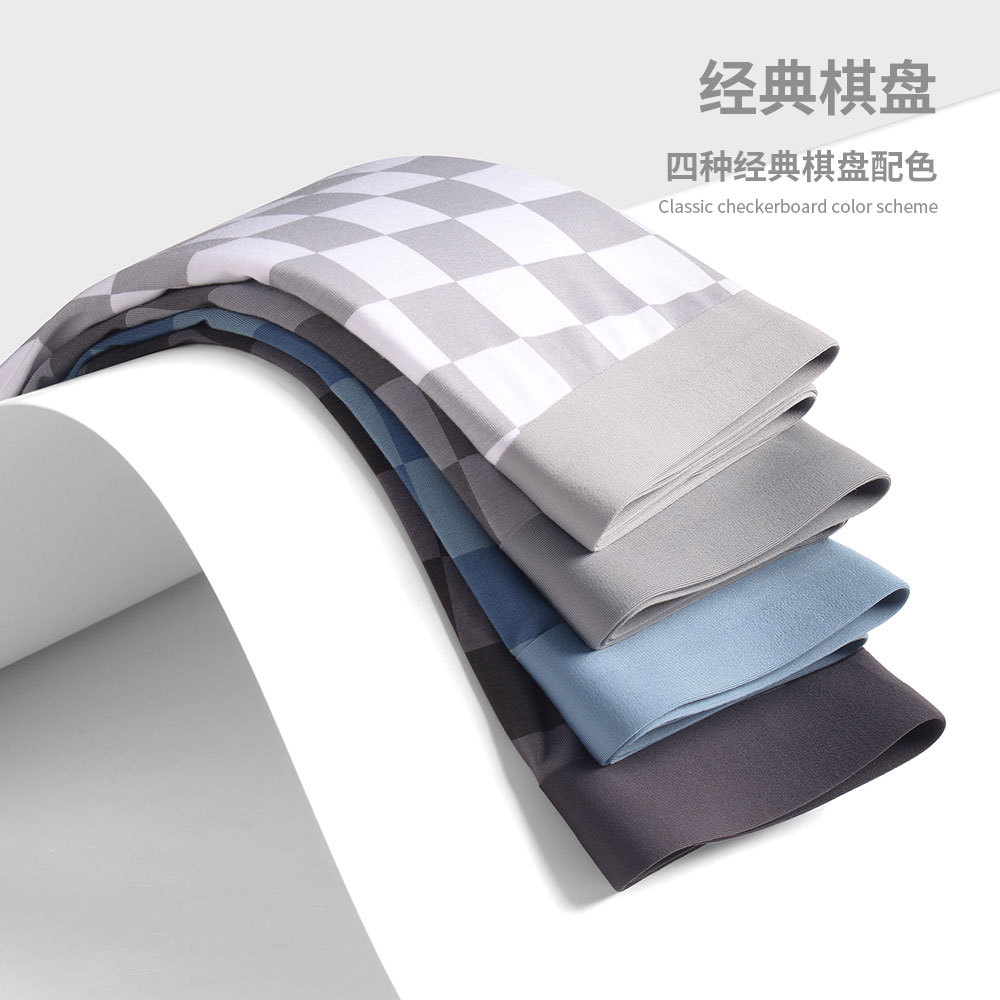 Оптовые мужские нижнее белье из модальных клетчатых решетчатых летних тонких дышащих принтом и плоской талией и квадратными угловыми брюками