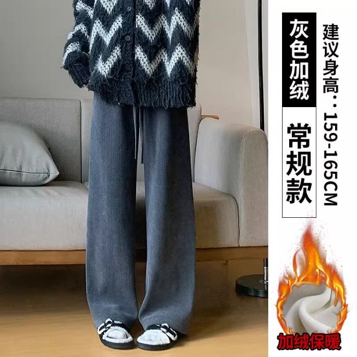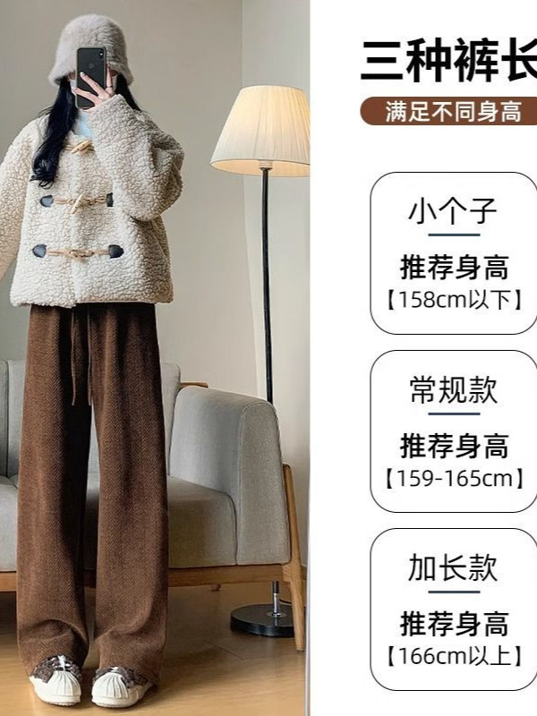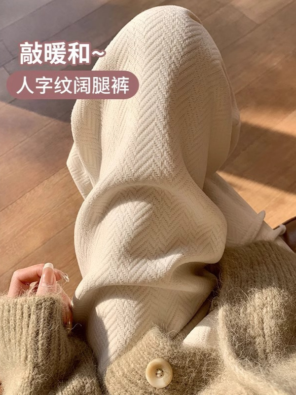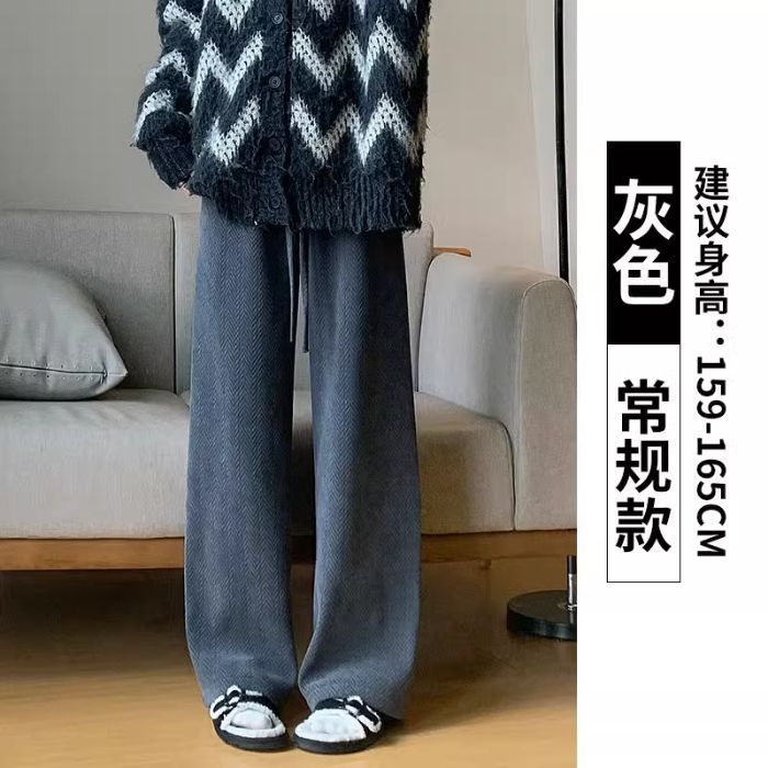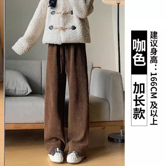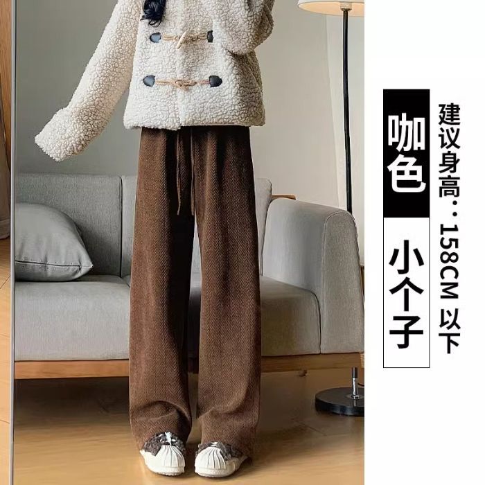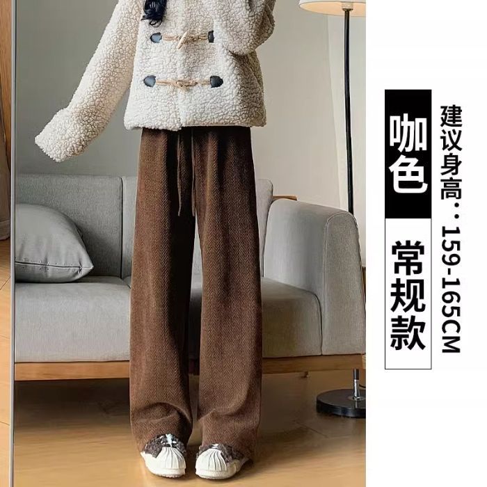 Главная страница > Карри с рисунком из елочки и бархатными широкими брюками женские осенние и зимние новые высокие талии и свисают повседневные толстые прямые брюки Sneier