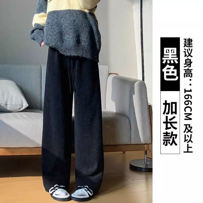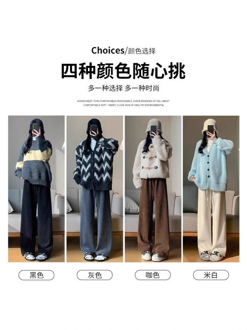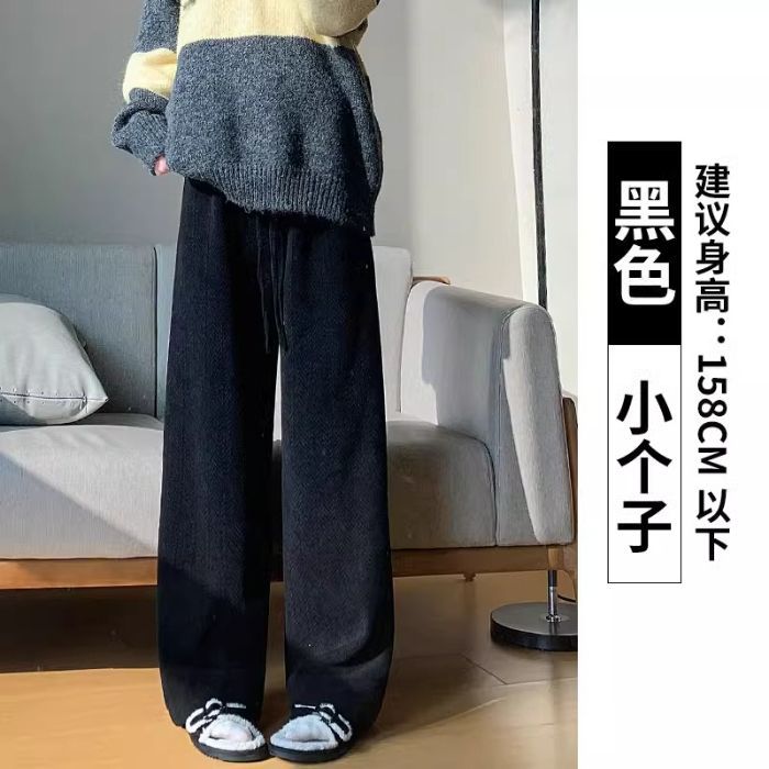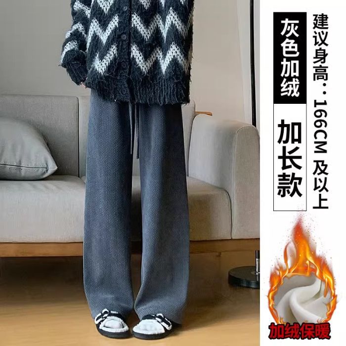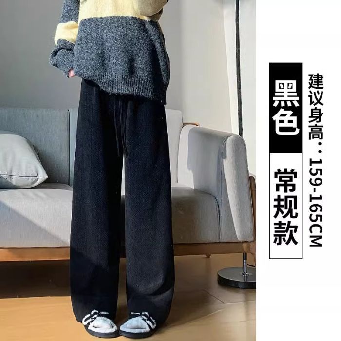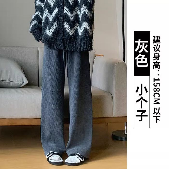 Главная страница > Карри с рисунком из елочки и бархатными широкими брюками женские осенние и зимние новые высокие талии и свисают повседневные толстые прямые брюки Sneier
